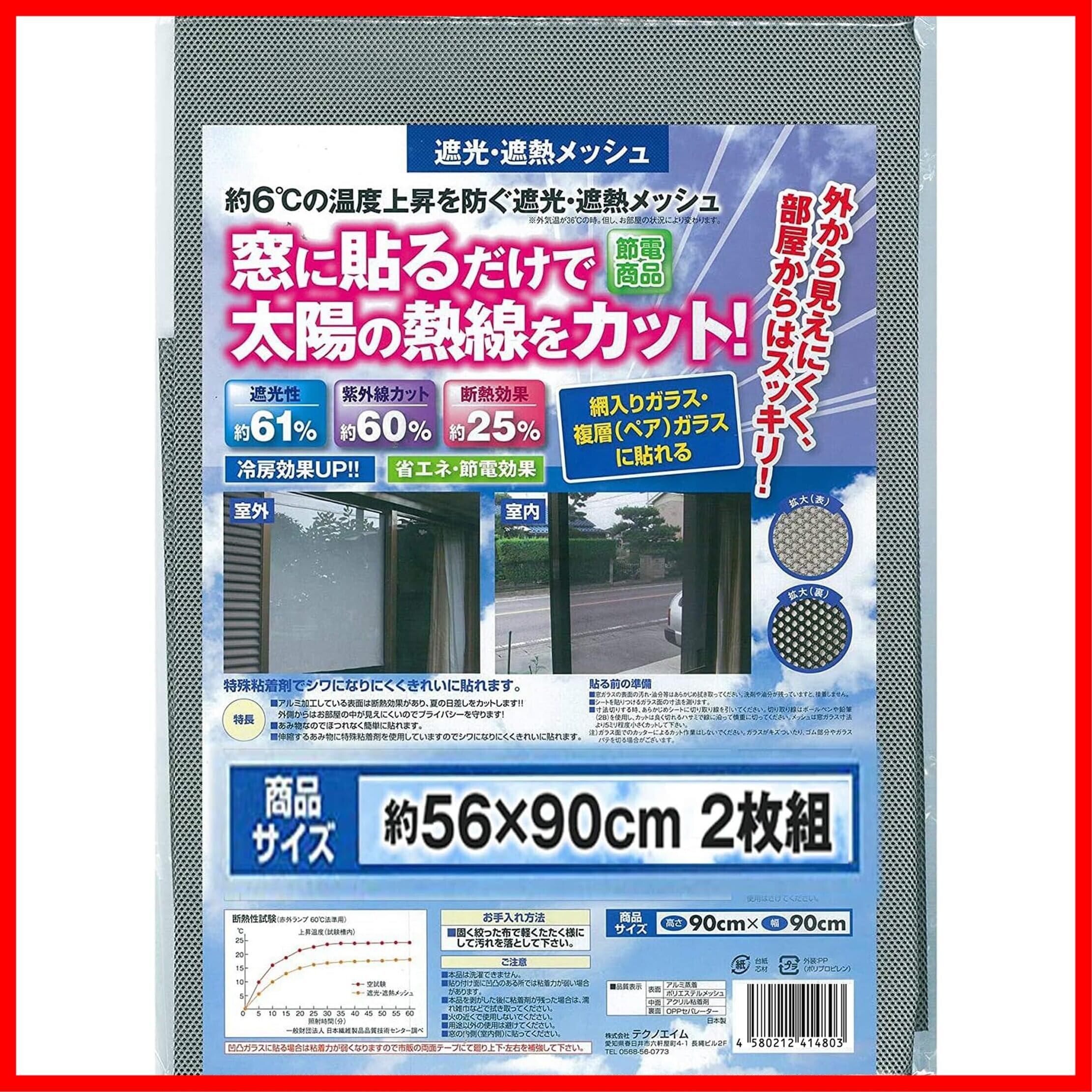 テクノエイム 窓フィルム 目隠し 断熱 遮光 遮熱 メッシュ 窓シート 日本製(表:アルミで UVカット ミラー 効果/裏:黒で 中から外が見える) 56×90cm 2枚組