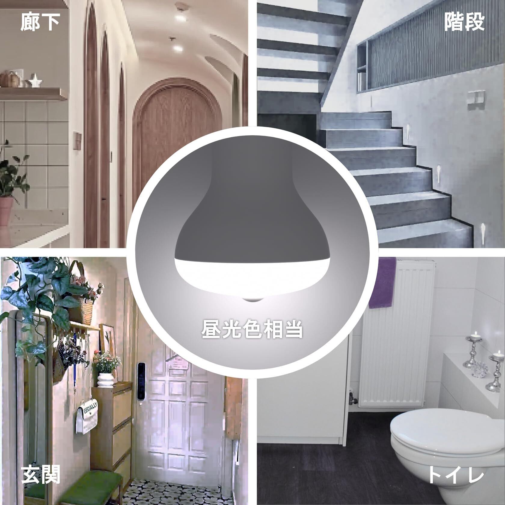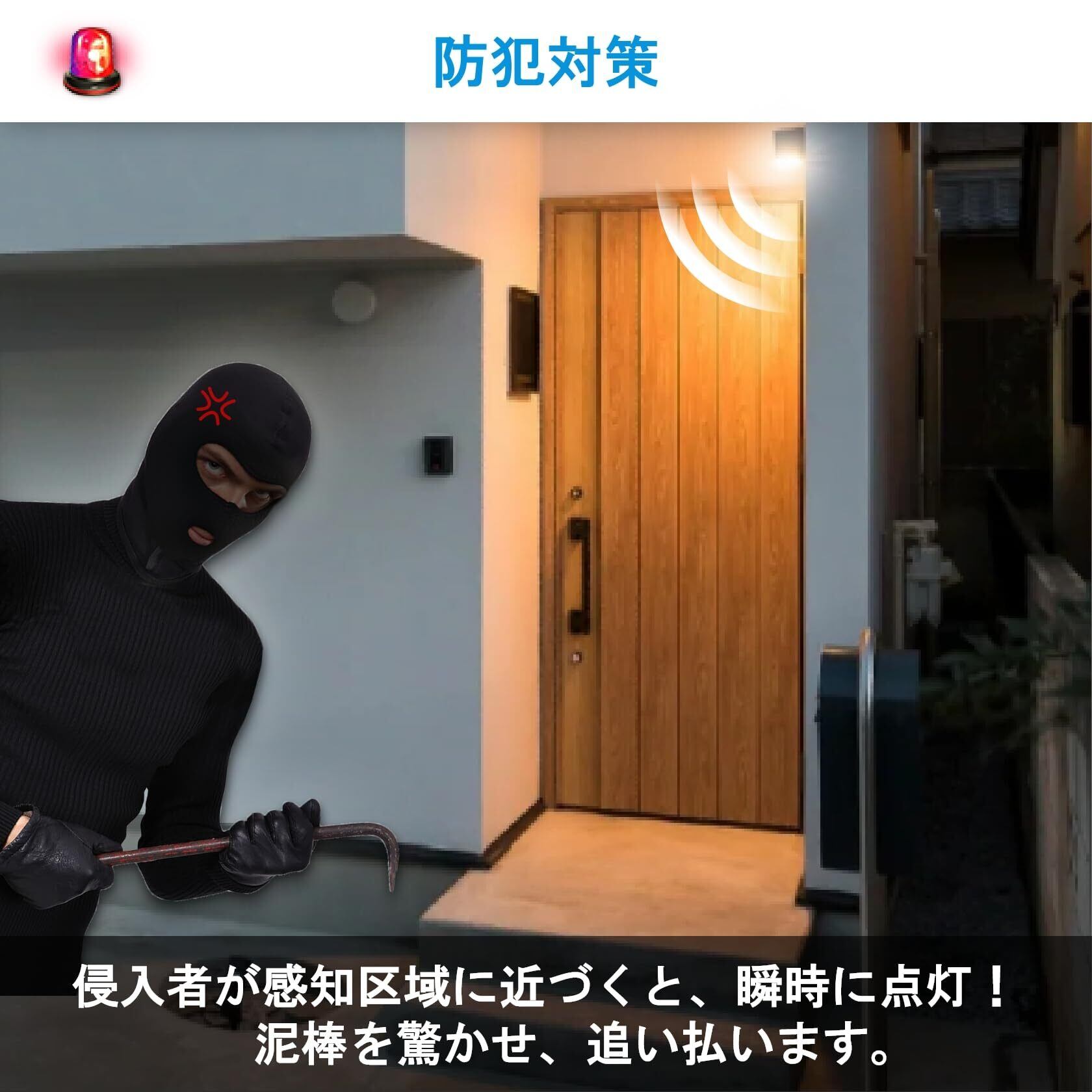 【幅広く使用される】玄関、廊下、トイレ、階段、倉庫、地下室、ガレージ、キッチン、洗面所、エントランスなど、自動点灯センサーが必要な場所で使用されます。また、夜間照明や防犯灯としてもおすすめです。