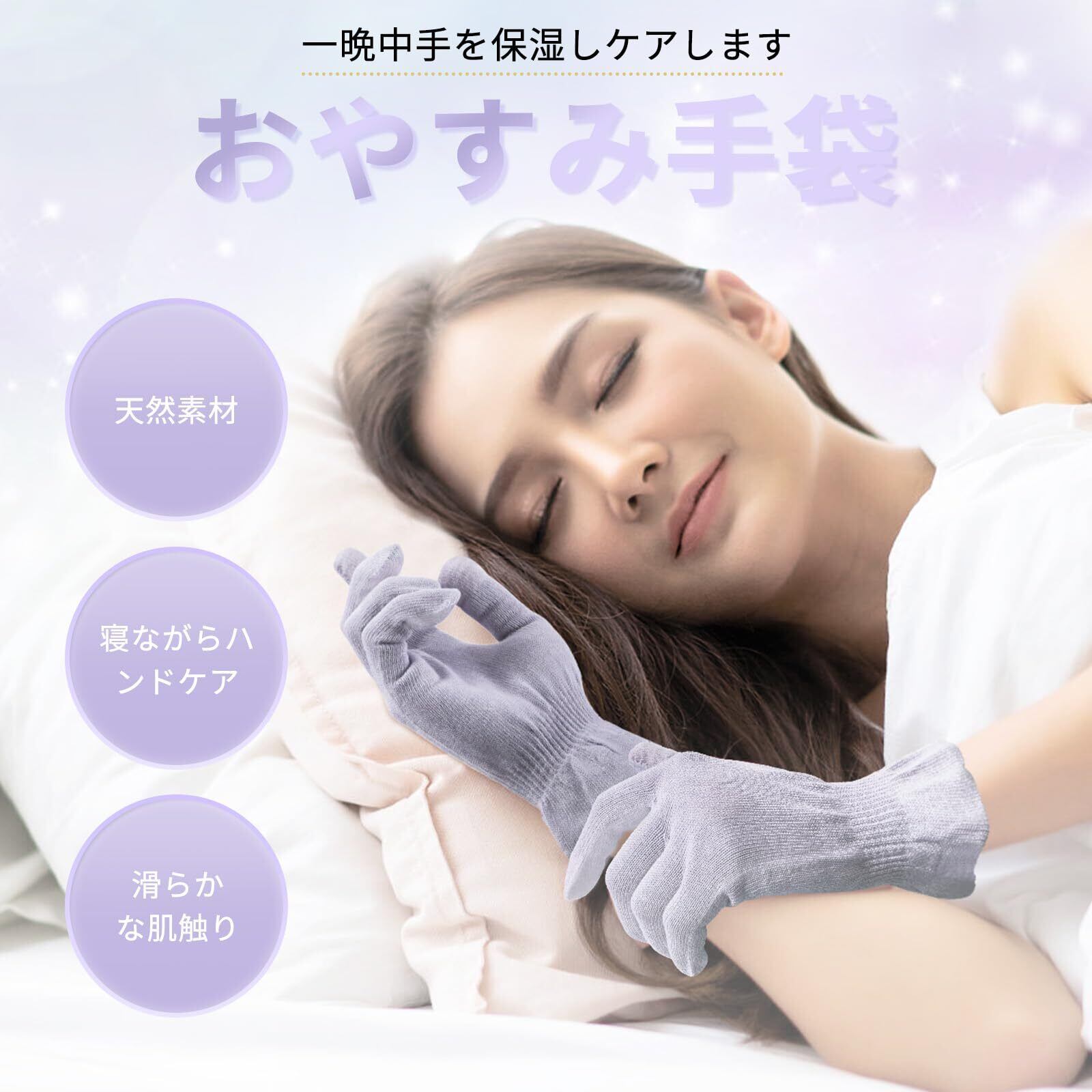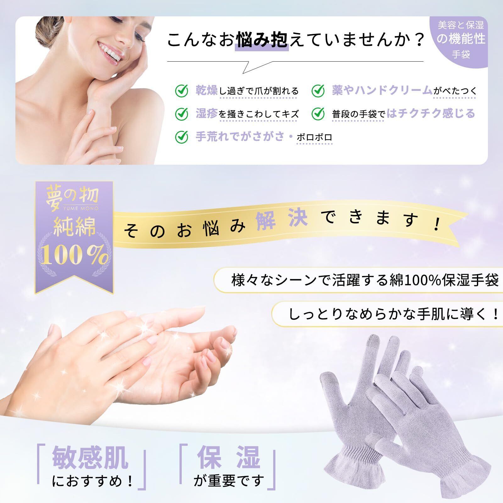 [夢の物] おやすみ手袋 保湿 手荒れ防止 ハンドケア スマホ対応 お肌に優しい純綿100% 手湿疹 ひび割れ あかぎれ アトピー ウィルス対策 就寝用 夜用 レディース 春夏(紫, 1双組)