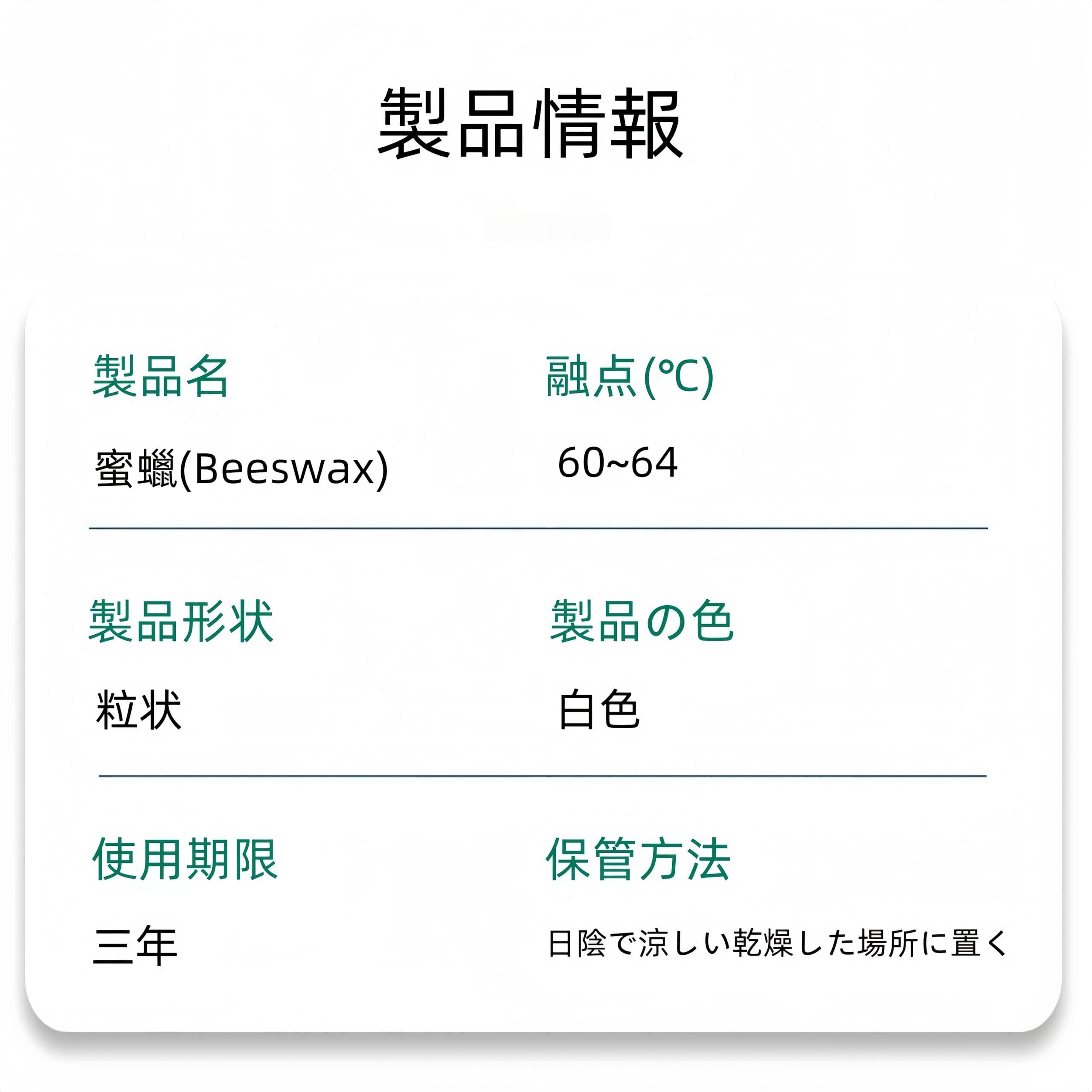 みつろうを主成分とし、白色のビーズワックスです。