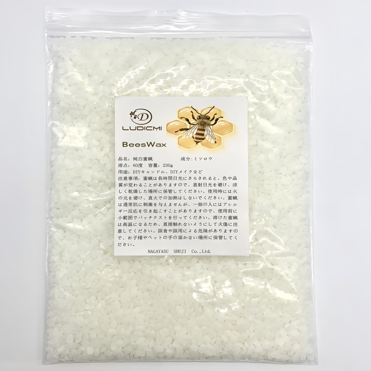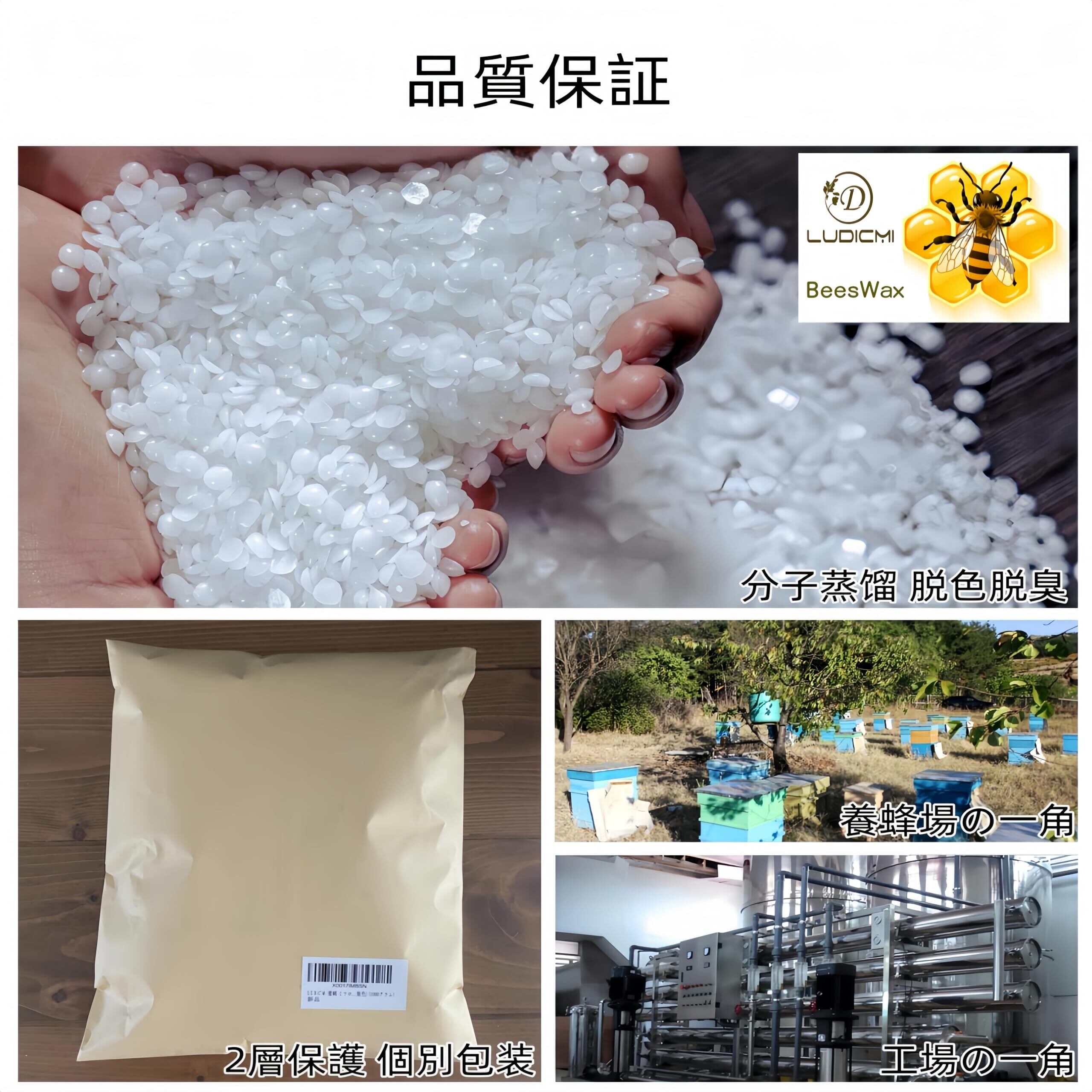 LUDiCMi ミツロウ 蜜蝋 ビーズワックス 天然素材添加物基準品 高品質な蜜蝋製品 白色 みつろう(脱臭 脱色) (230, グラム)