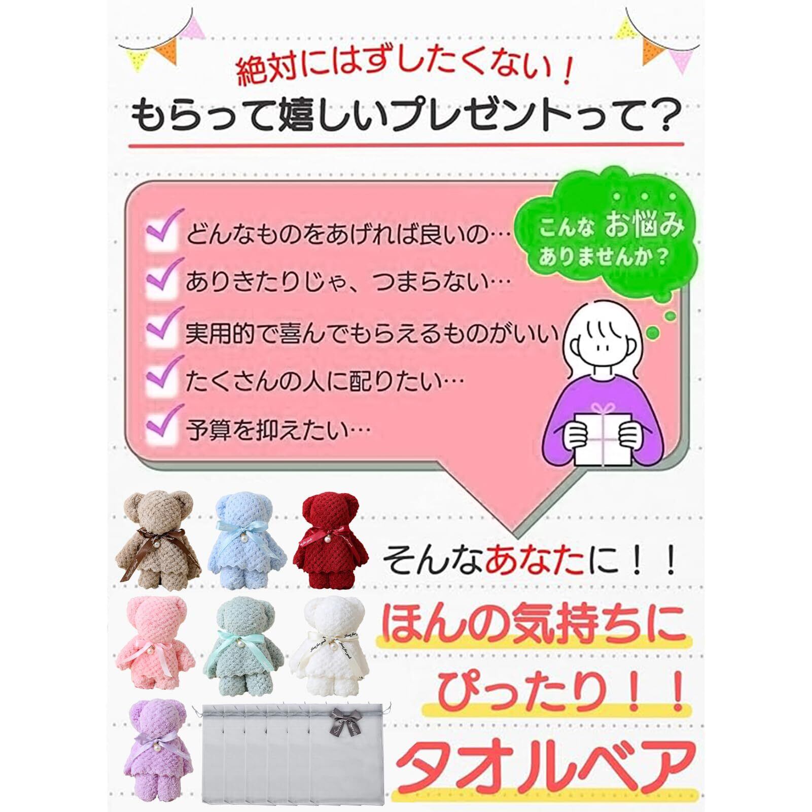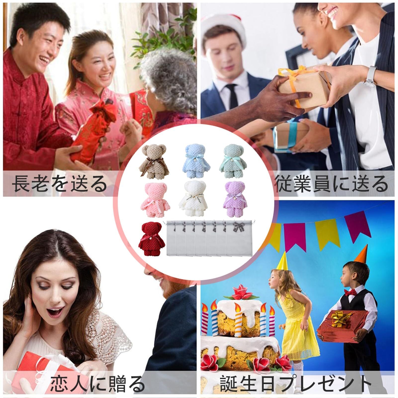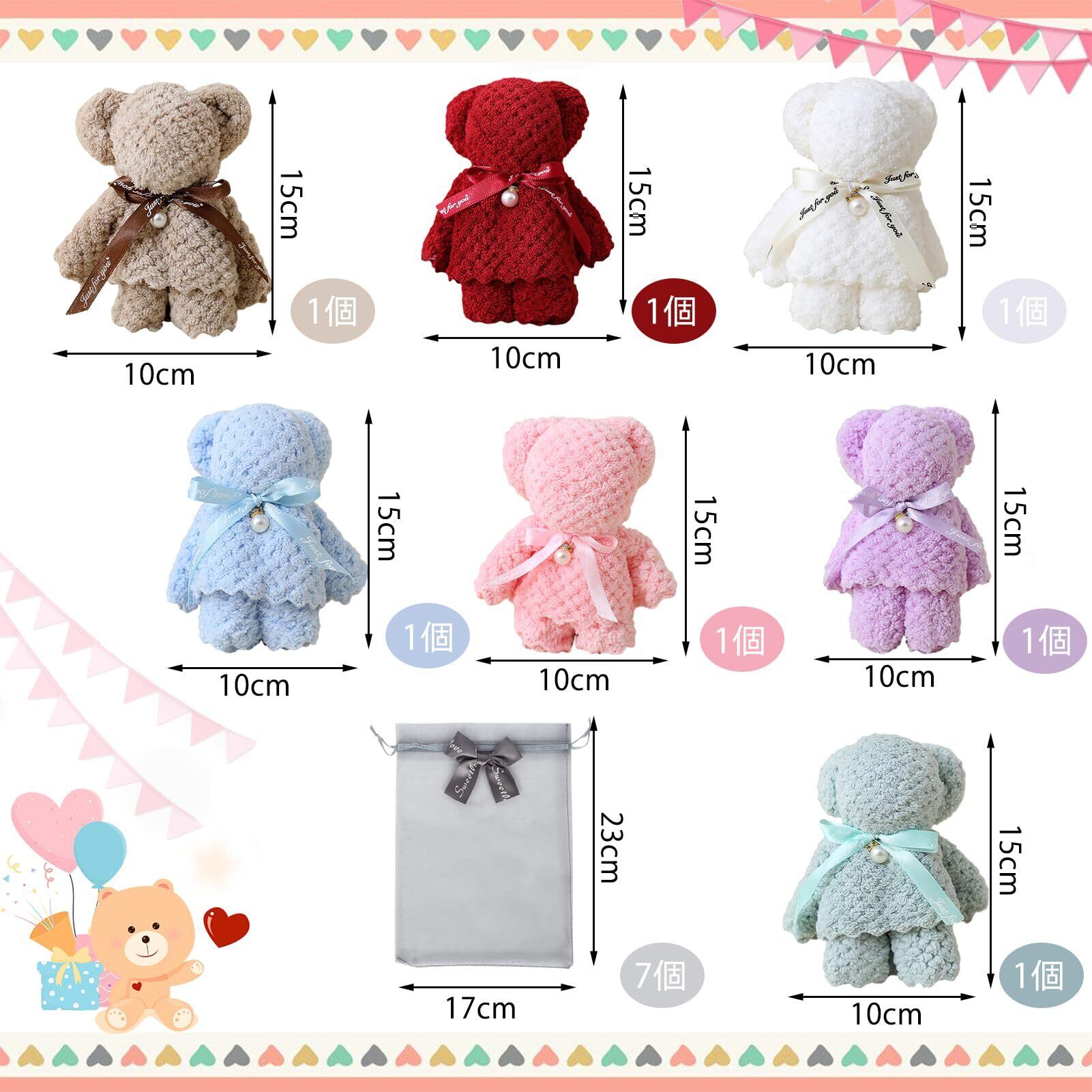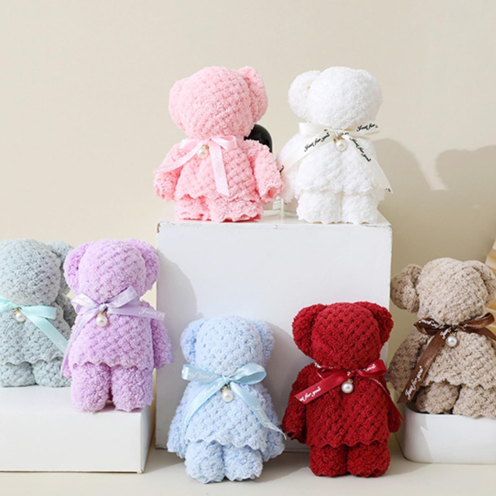 Tumao チギフト タオルベア ハンカチベア ハンカチ かわいい くま タオル プレゼント クリスマス 退職 退院 結婚式 誕生日 お返し お礼 景品 ホワイトデー 粗品 ラッピング袋入り (スタイル1-7個入り)