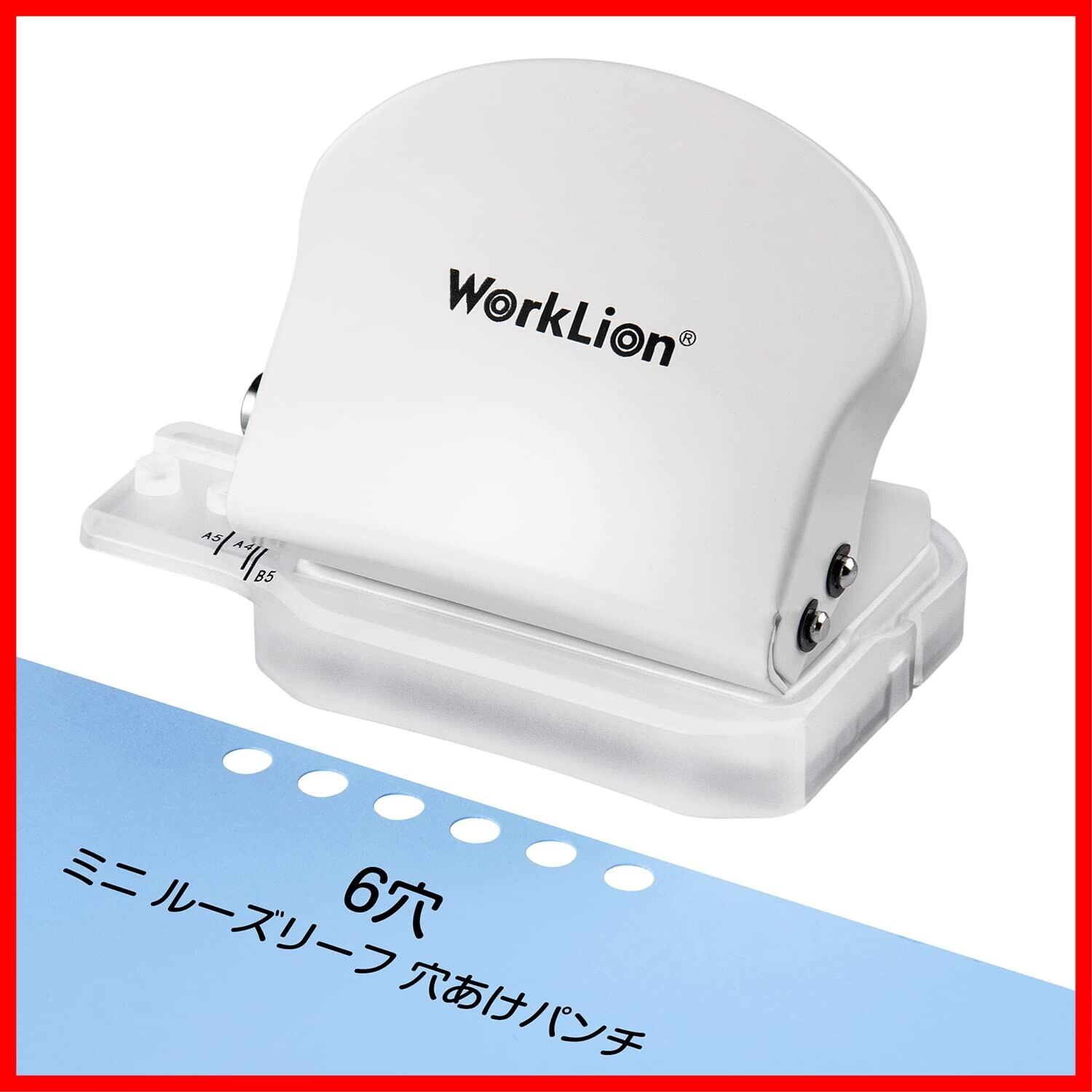 WORKLION ルーズリーフパンチ6穴: あなあけパンチ A4/B5/A5対応 ペーパーパンチャー 多穴対応 小型 携帯用 バインダー 手帳 学習用 事務用(ホワイト)