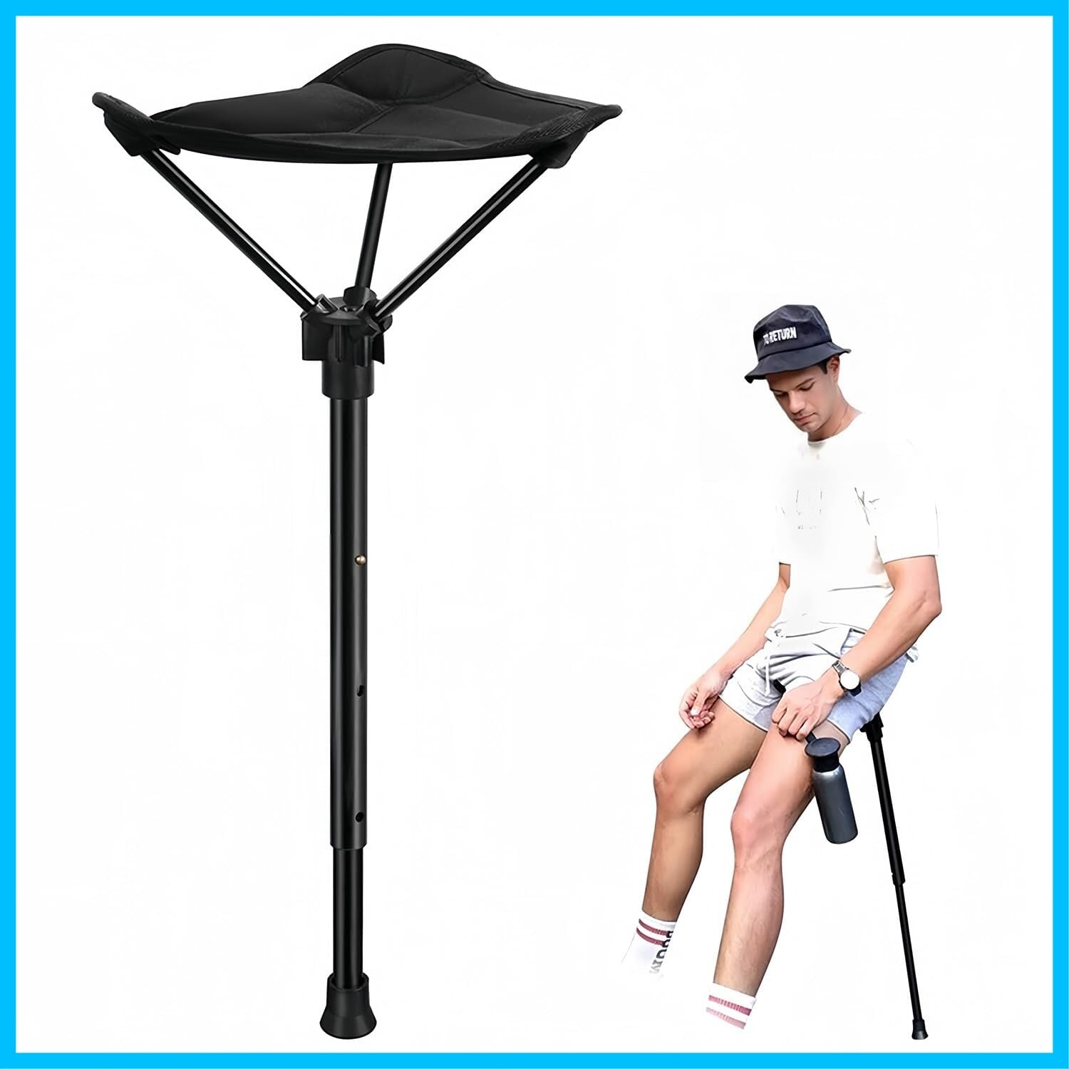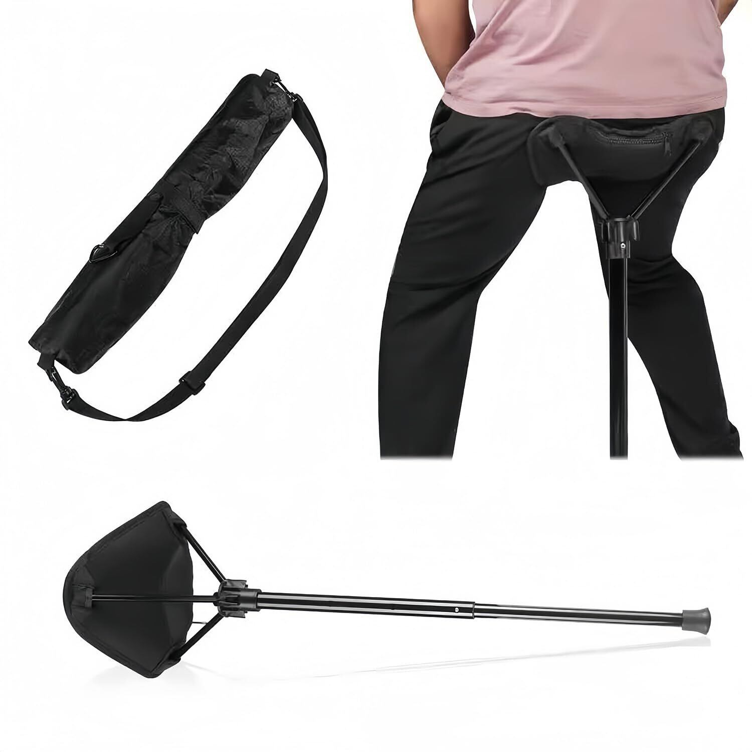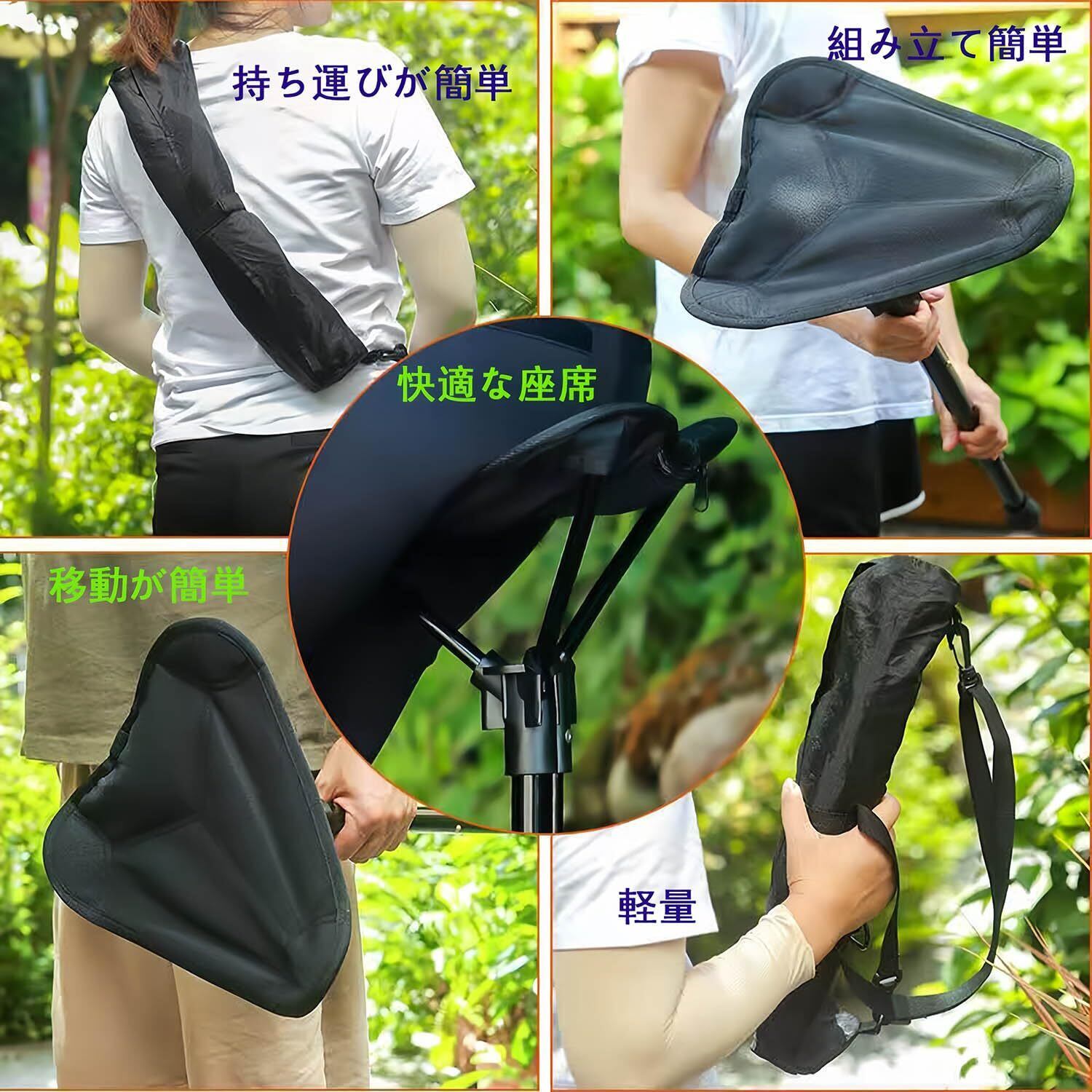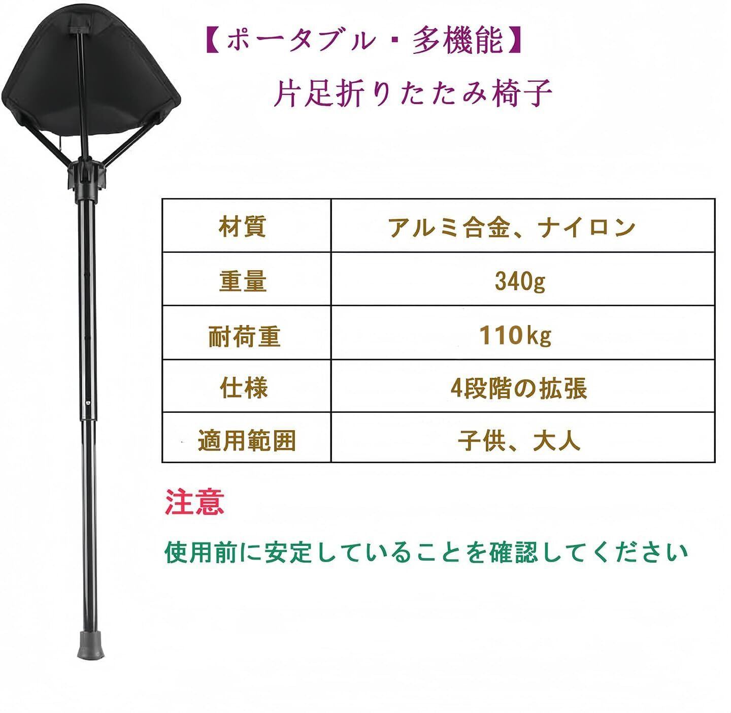 アウトドアチェア ポータブル折りたたみ椅子立ったまま 座れる ステッキ モバイル キャンプ 片足ア 伸縮式 4 段階の高さ調節 超軽量 収納バッグ付き 持ち運び簡単 待ち行列/駅/コンサート/ハイキング/釣り/バーベキュー/キャンプ/登山/ハイキングの短い休憩 折りたたみ 持ち運び 軽量