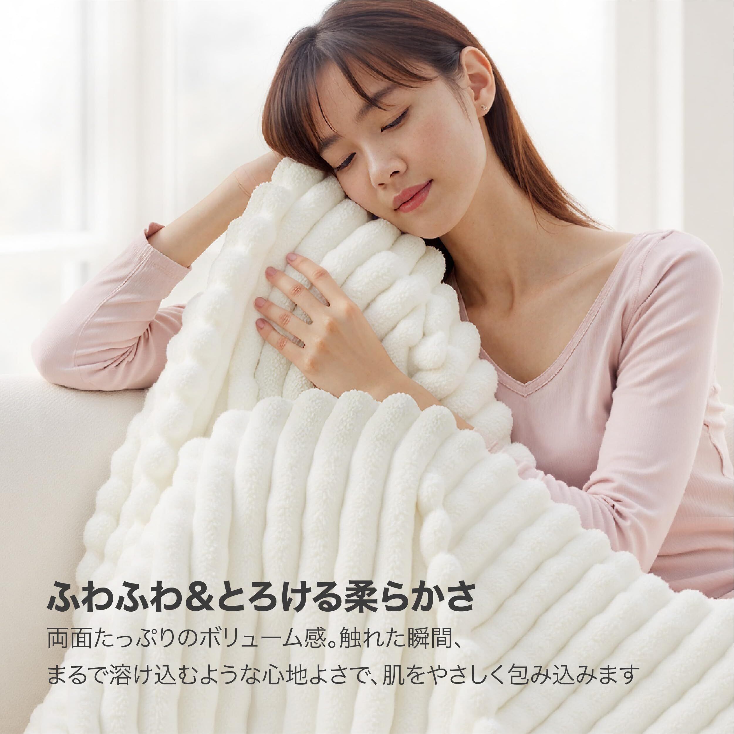 すばやく暖かく、しかもムレにくい快適構造:立体ストライプデザインは見た目の美しさだけでなく、独自構造によって熱を効率よく閉じ込めつつ、空気をスムーズに循環させることで、わずか10秒でぽかぽか感を実感できます。暖かいのにムレにくく快適。秋には軽やかなブランケットとして1枚で使用でき、冬には掛け布団と重ねてさらに保温性アップ。しっかりと包み込むようなあたたかさをお届けします。
