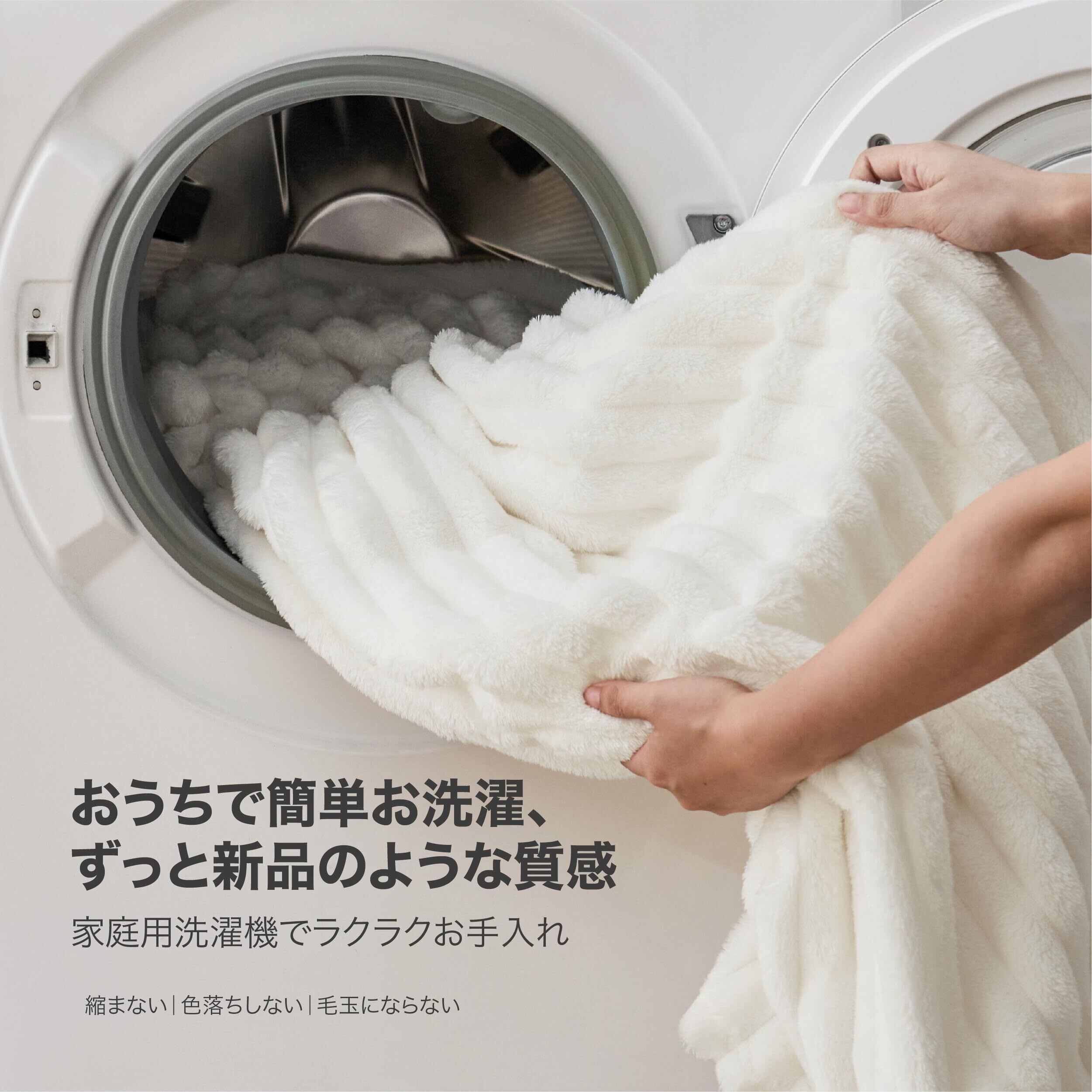 丁寧なつくりと高い耐久性、お手入れも簡単:高精度な縫製技術を採用し、ステッチは細かくしっかりとした仕上がり。さらに二重ロック縁仕様により、ほつれにくく、引っ張りにも強い構造。細部まで美しく仕上げられた品質です。家庭用洗濯機に対応しており、ご自宅で簡単にお手入れ可能。縮みにくく、色落ちや毛玉にもなりにくい設計で、繰り返し洗ってもふわふわ感と見た目の美しさが長続きします。