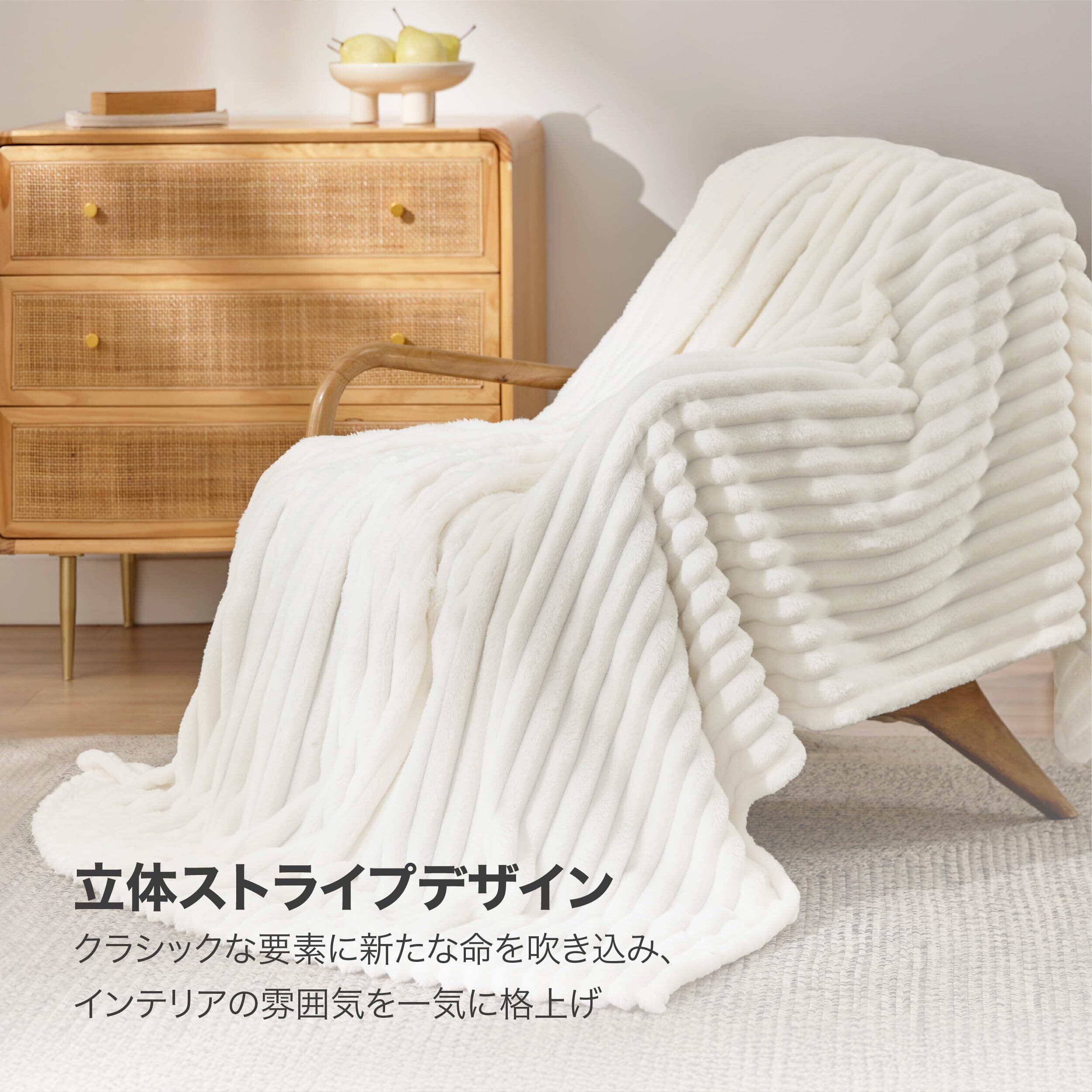 Bedsure 毛布 シングル ふわとろ 冬用 厚手 ブランケット おしゃれ ふわふわもうふ もこもこ 柔らかく肌触り 軽量 掛け毛布 洗える 寒さ対策 軽い 暖かい(150x200,ホワイト)