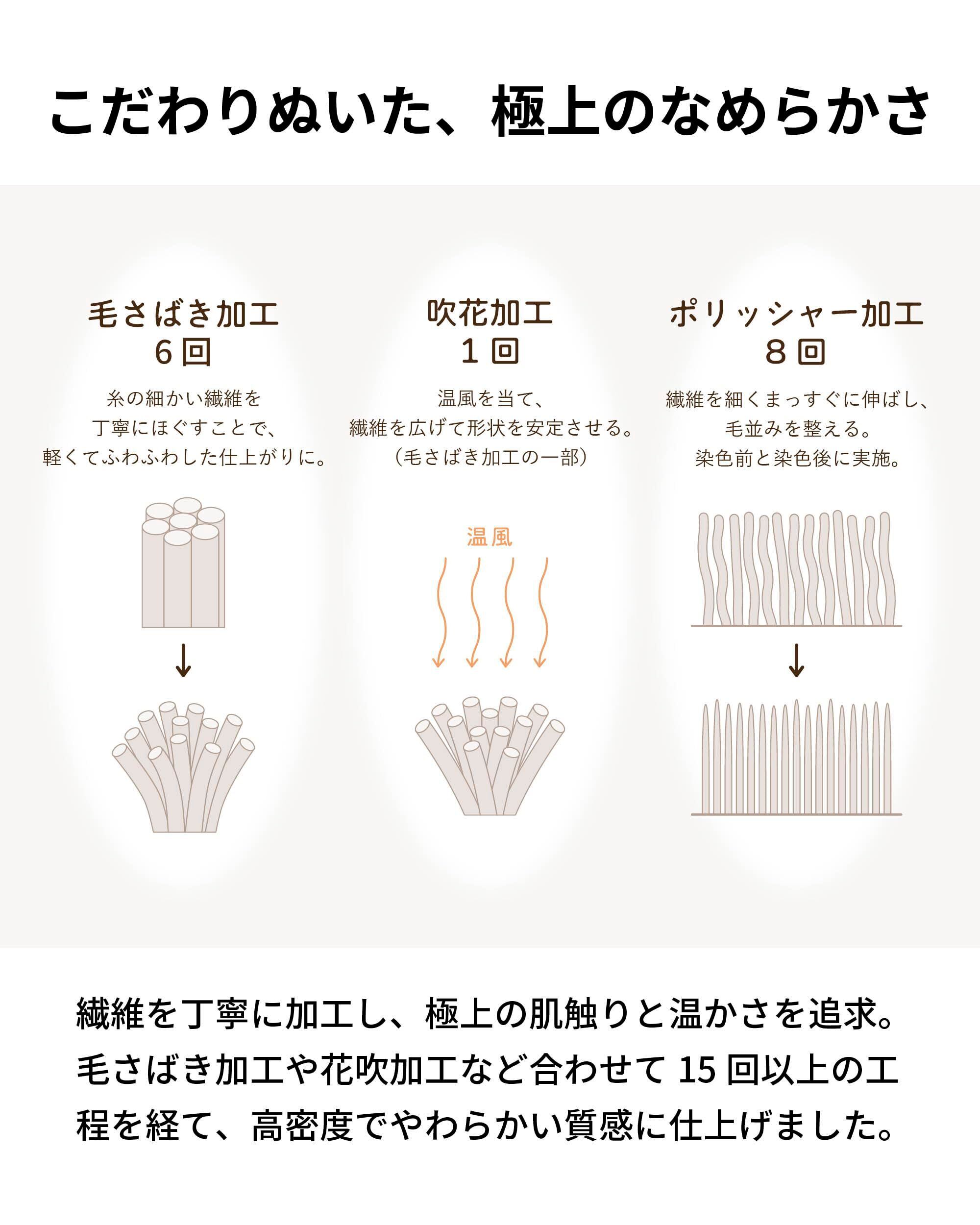 防寒用具や毛布などによく使われる、保温性が高いマイヤー素材を採用。 ふんわりとした肌触りで、しっかりと体を温めてくれます。