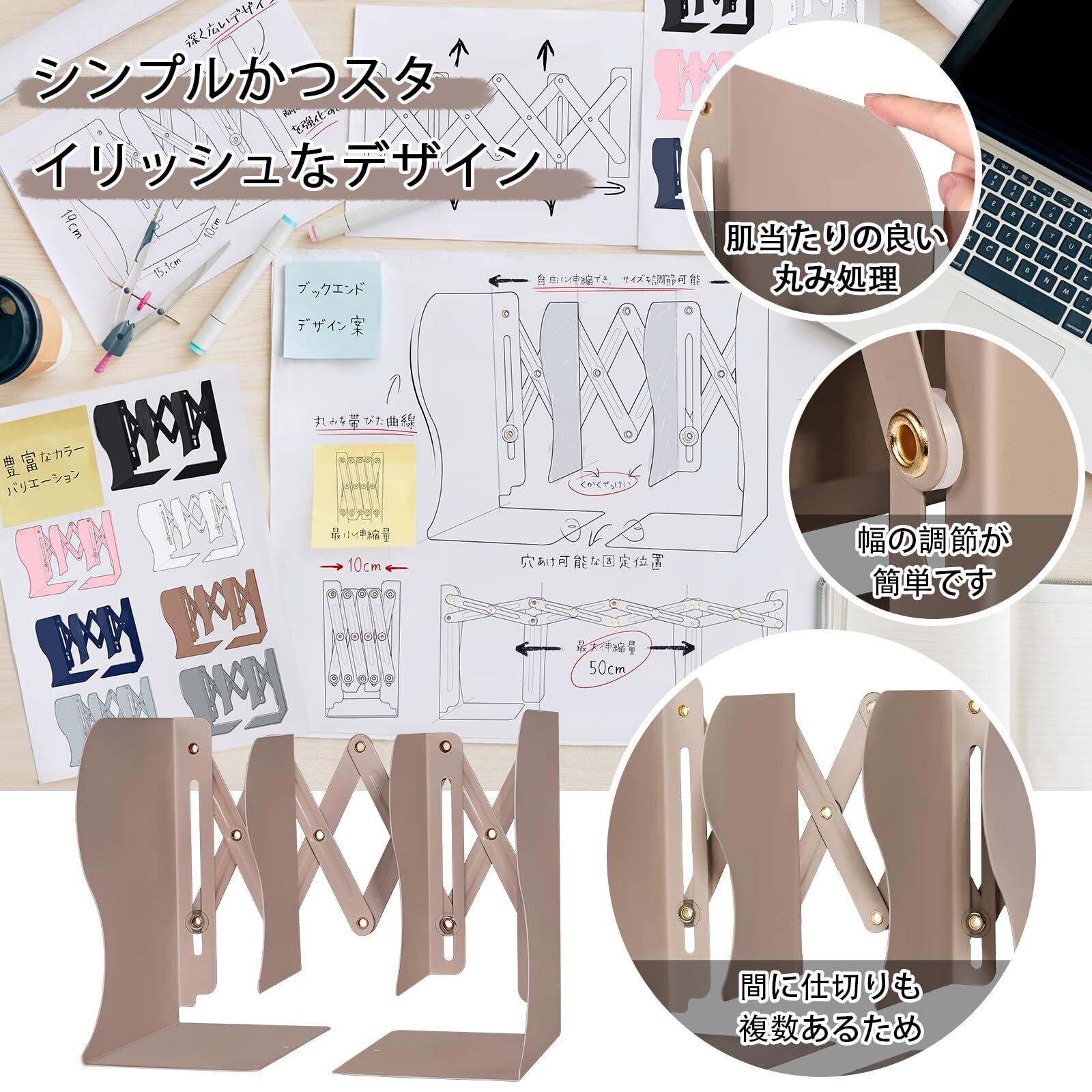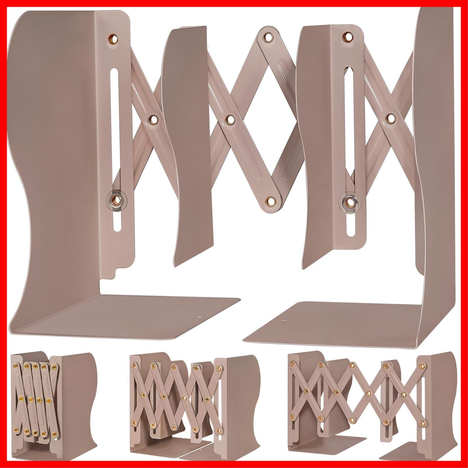 WEWINK PLUS ブックエンド 伸縮自在 カーキ 大幅 50cm 卓上本棚収納 本立て 倒れない ブックスタンド おしゃれ 金属製 本 仕切りスタンド 雑誌 書類整理 教科書 A4 A5 CD新聞ファイル 書斎 事務用品 学習 文房具 オフィス用品
