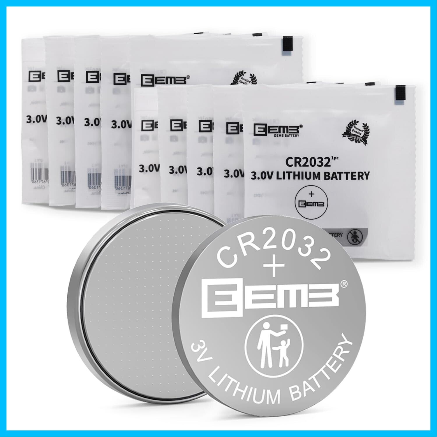 EEMB 10パックCR 2032電池3 Vリチウム電池ボタンコイン電池2032電池DL 2032、ECR 2032、LM 2032リモコン、腕時計、計算機、ドアベル、医療機器、コンピュータマザーボード、電子組織者、キーケース