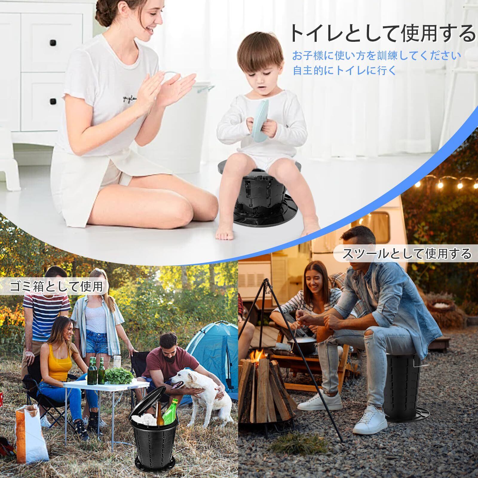 多機能:トイレとしてだけでなく、快適なスツール、ゴミ箱、嘔吐バケツなどに簡単に組み合わせることができ、キャンプ、ハイキング、釣り、旅行、ドライブなど、さまざまなニーズに対応します。