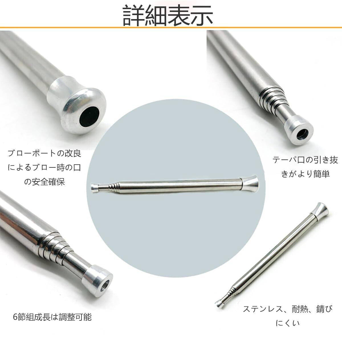 【特徴】火吹き棒の口に当たる部分は丸みを帯びており、安心して使用できます。伸縮式で6節に分かれています。
