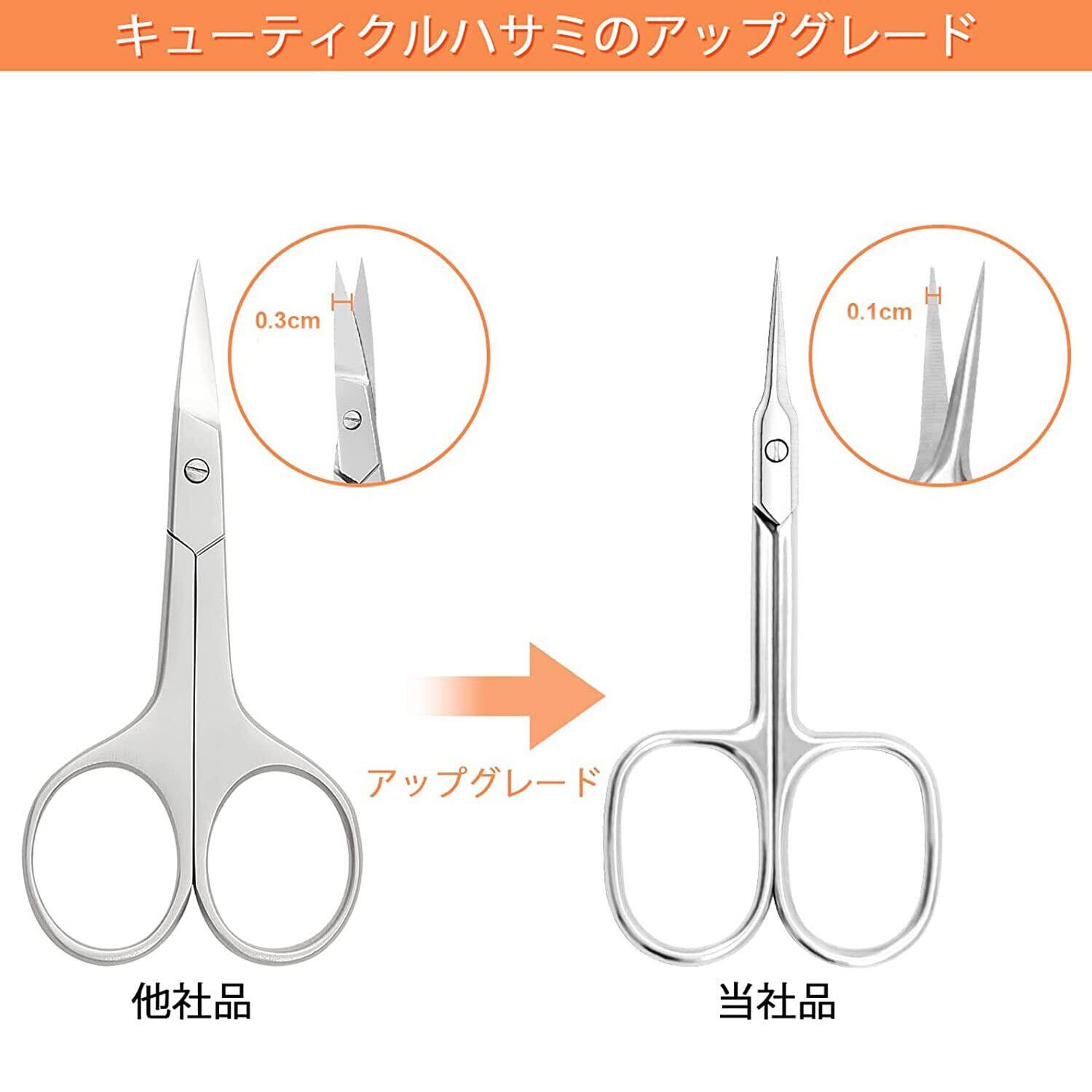カーブドデザイン甘皮処理ハサミ: カーブドデザインは、どんな角度や形でもキューティクルハサミをより精密にし、日常の爪切りや美容のお手入れのほとんどの作業に適しています。あらゆる角度、形状で極めて精密な切断が可能な設計となっている