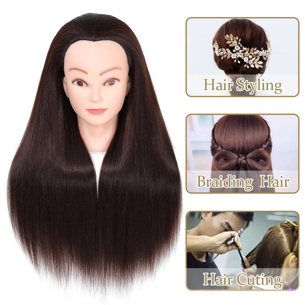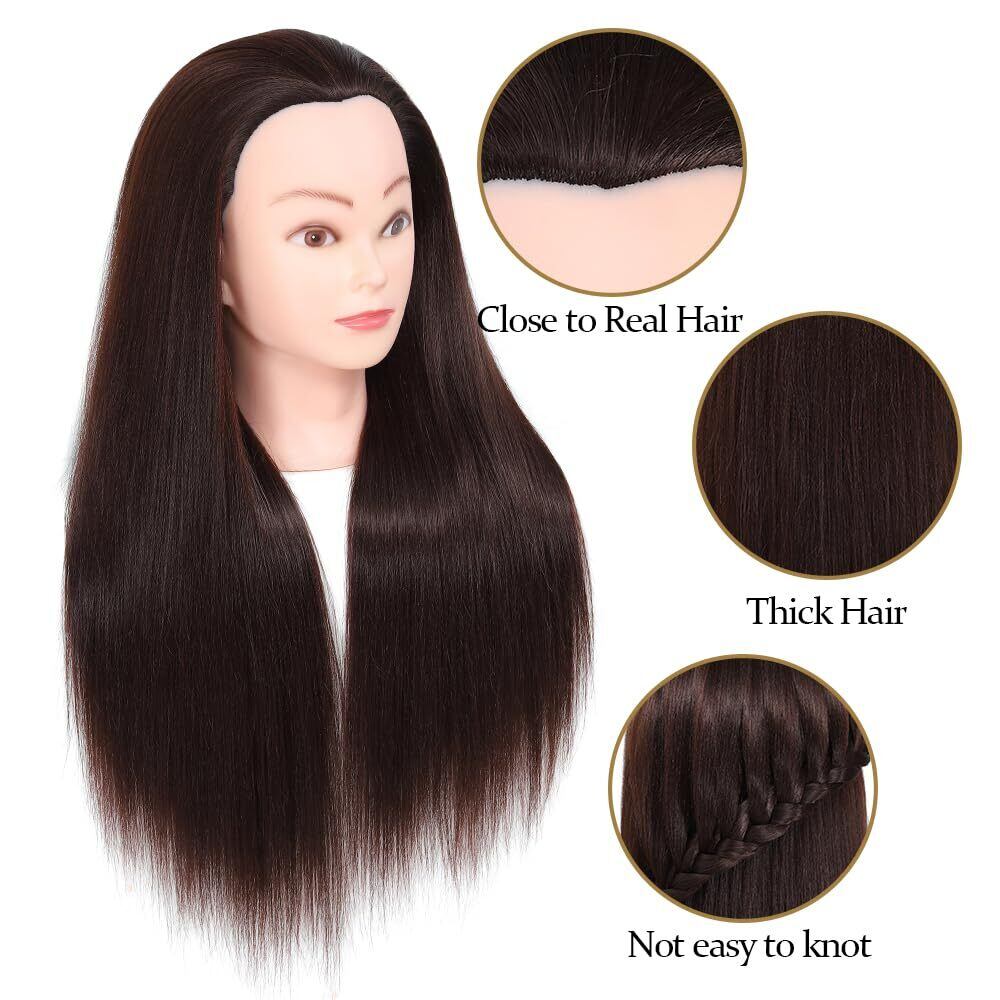 高品質: トレーニングヘッドは100%合成繊維の髪で作られ、26-28インチの長い髪で、1cm²あたり250gの髪の密度があり、様々なヘアスタイルが簡単にできます。