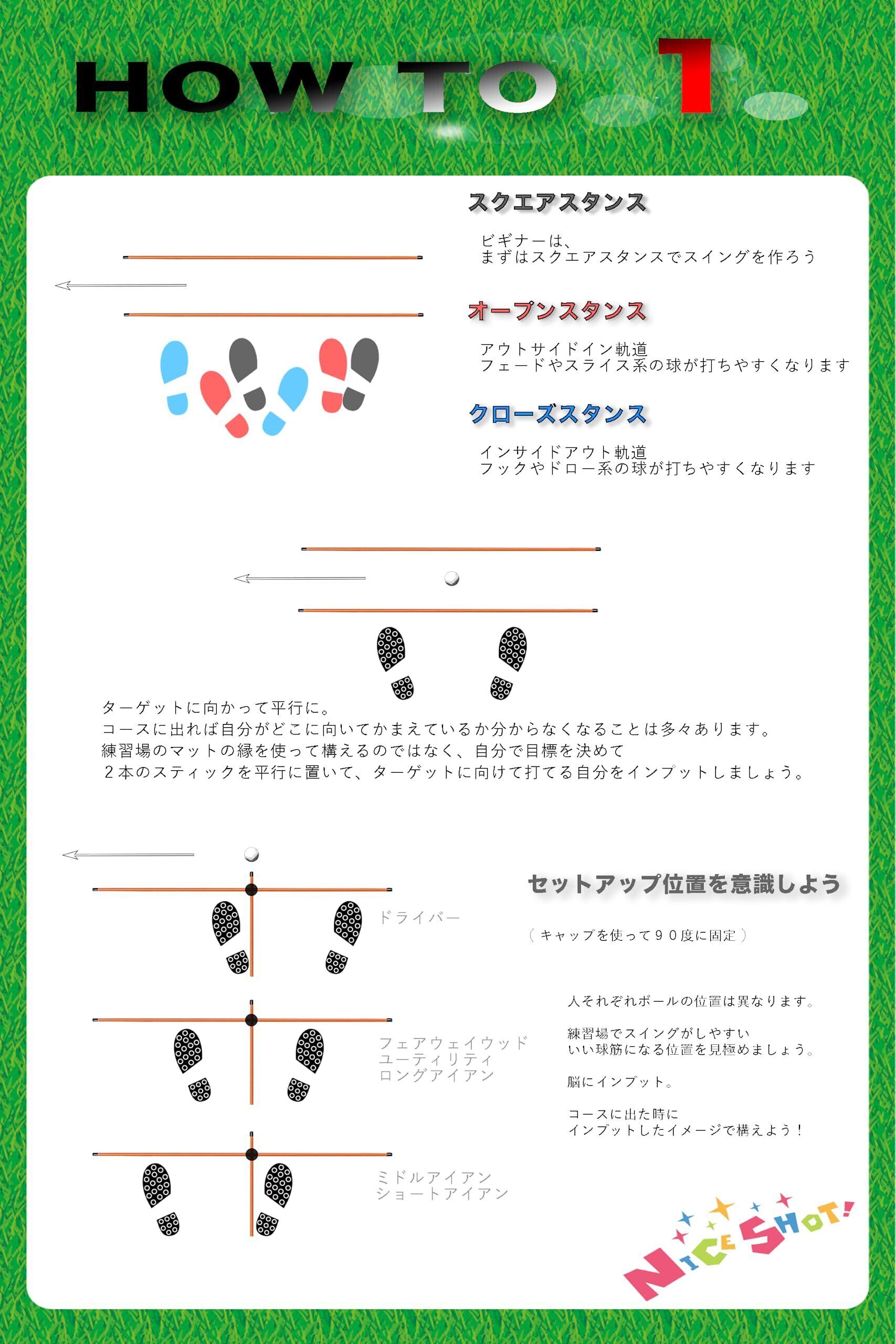 【インプット】アライメントスティックを使って練習場でのイメージを脳の奥底に焼き付けよう!コースでは狙い通りかまえて打つことができるでしょう。