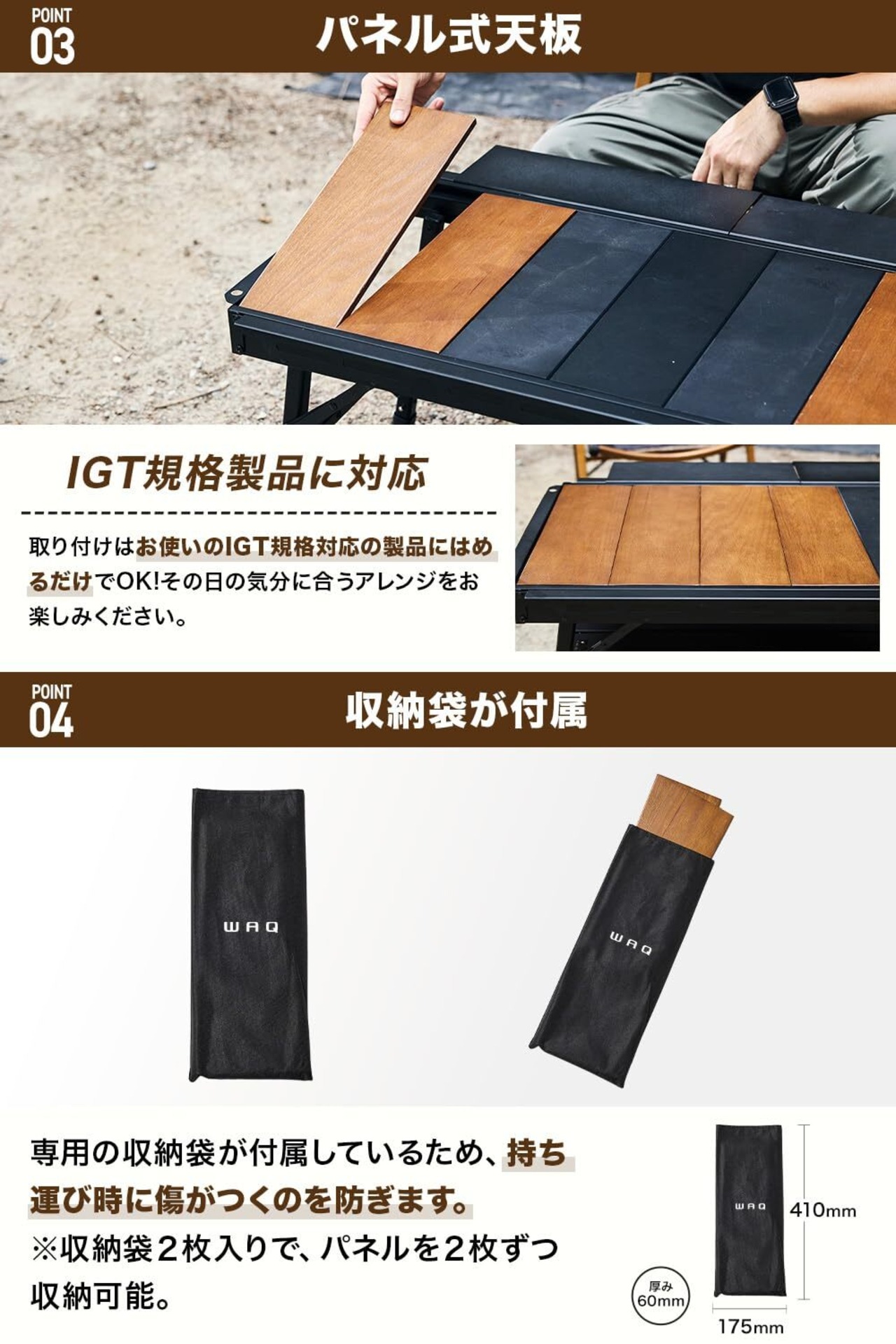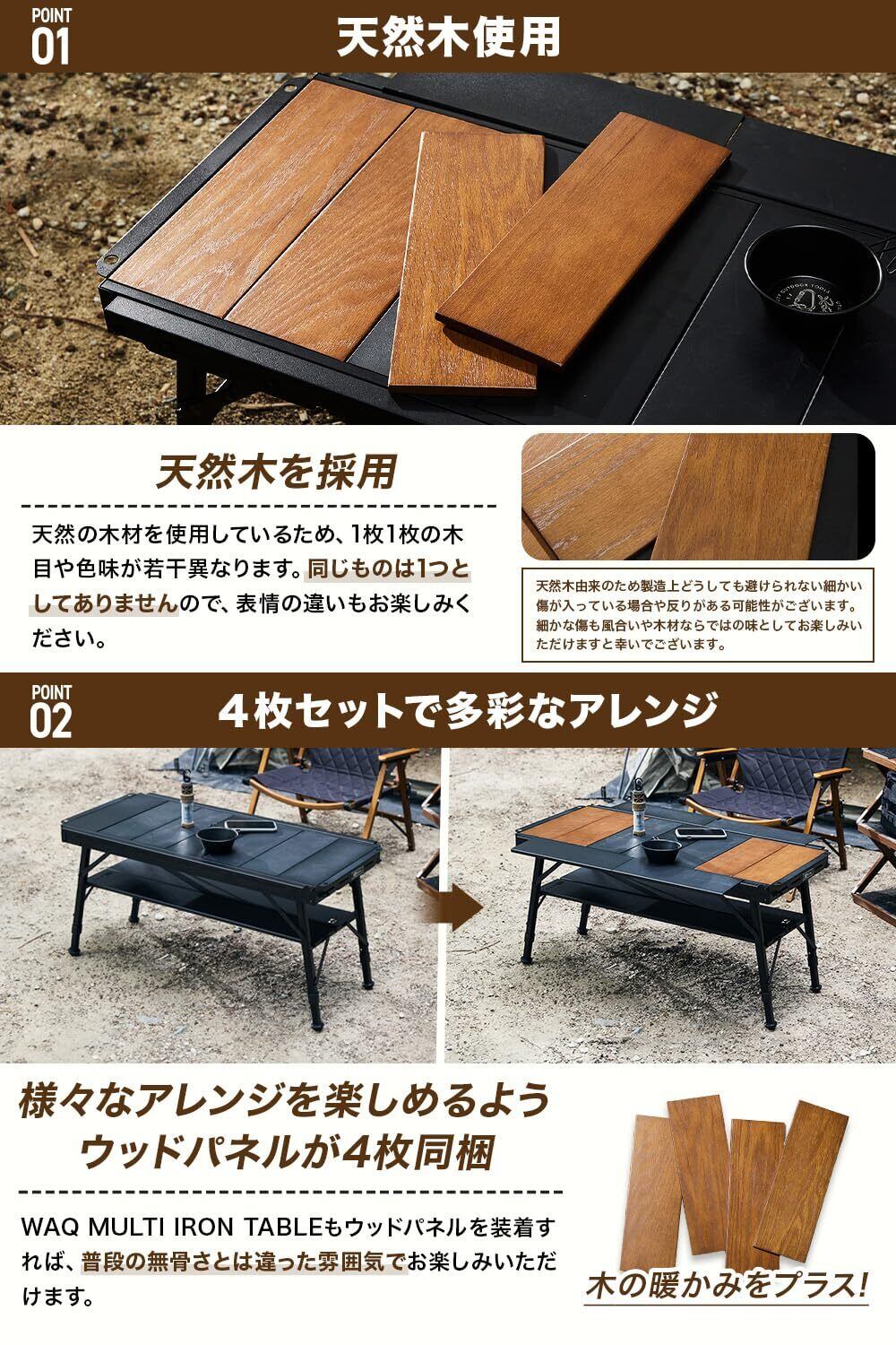 【WAQ テーブル用ウッドパネル 4枚セット】・天然木を使用・4枚セットで多彩なアレンジが可能・パネル式天板・収納袋付属