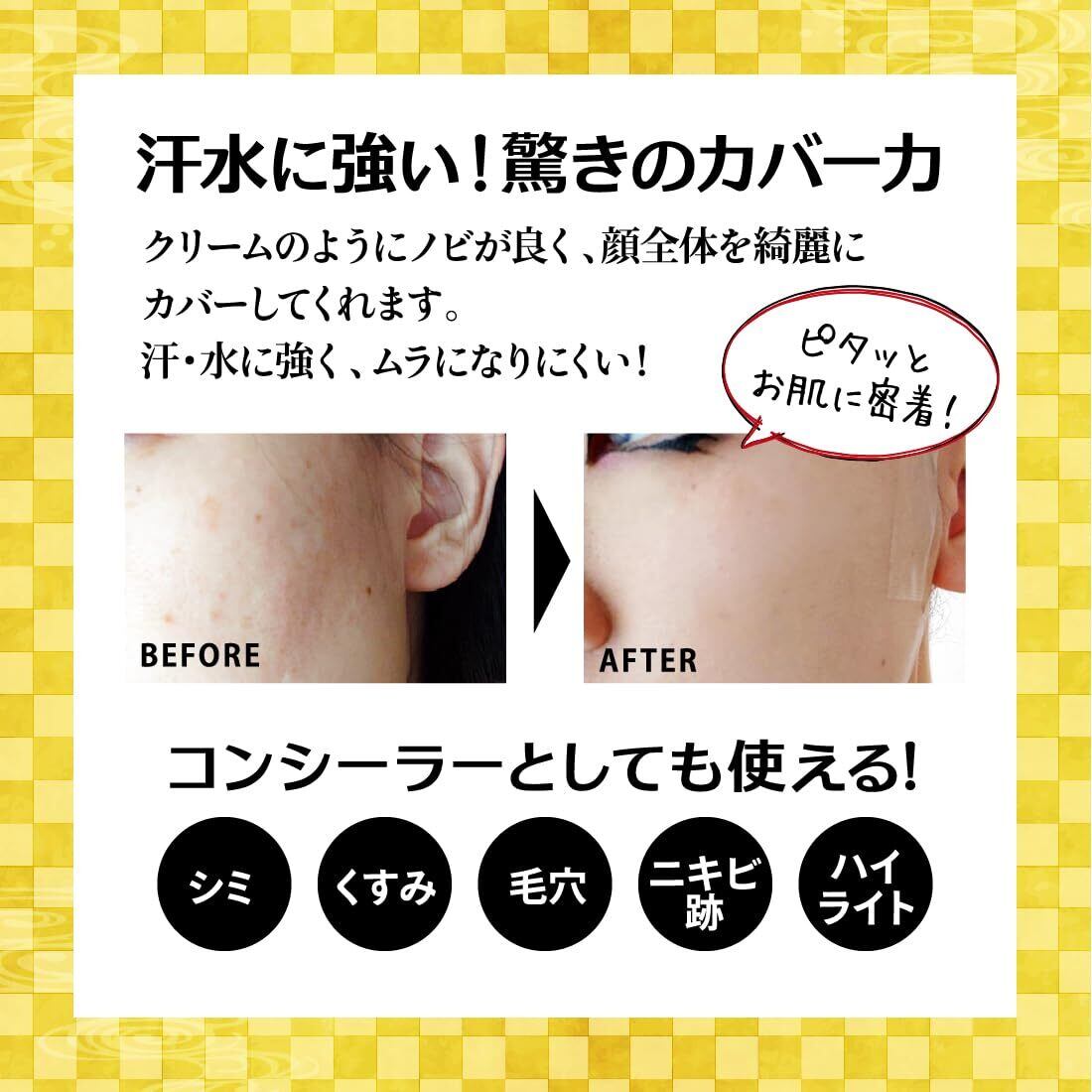 【 汗 水 涙 に強い 】お肌にぴったりと密着するのでムラになりにくく崩れにくい。長時間の撮影でも安心。【 保湿成分 】ホホバ種子油 配合