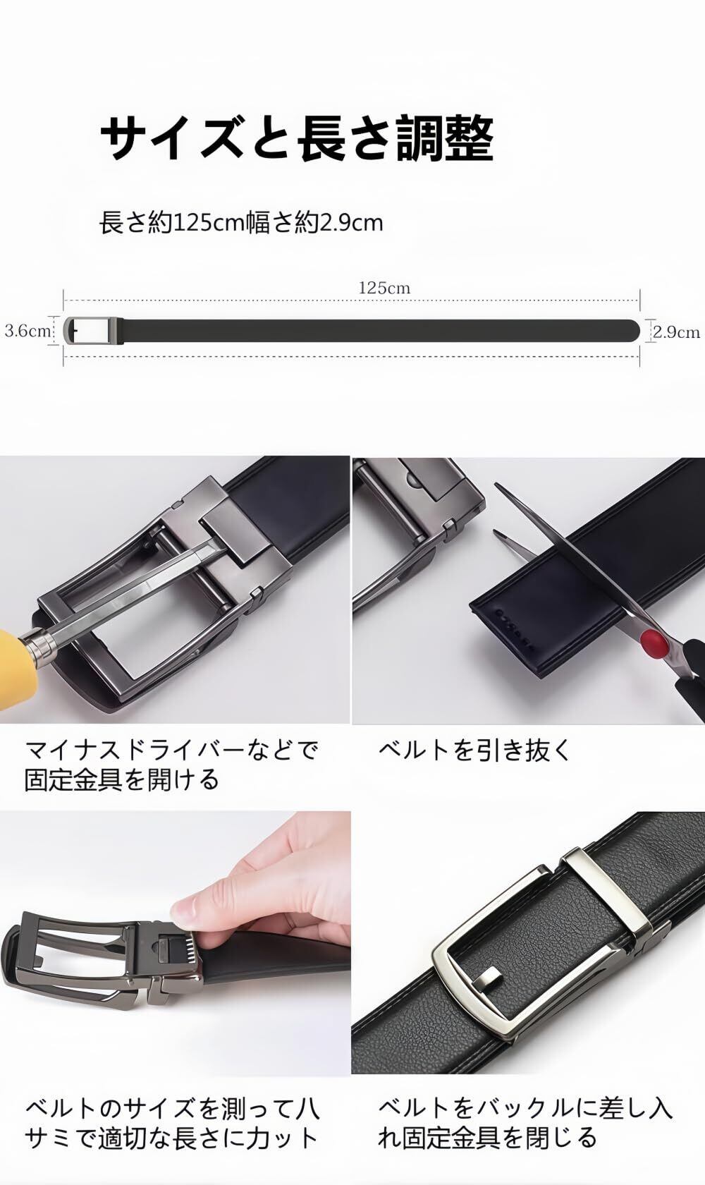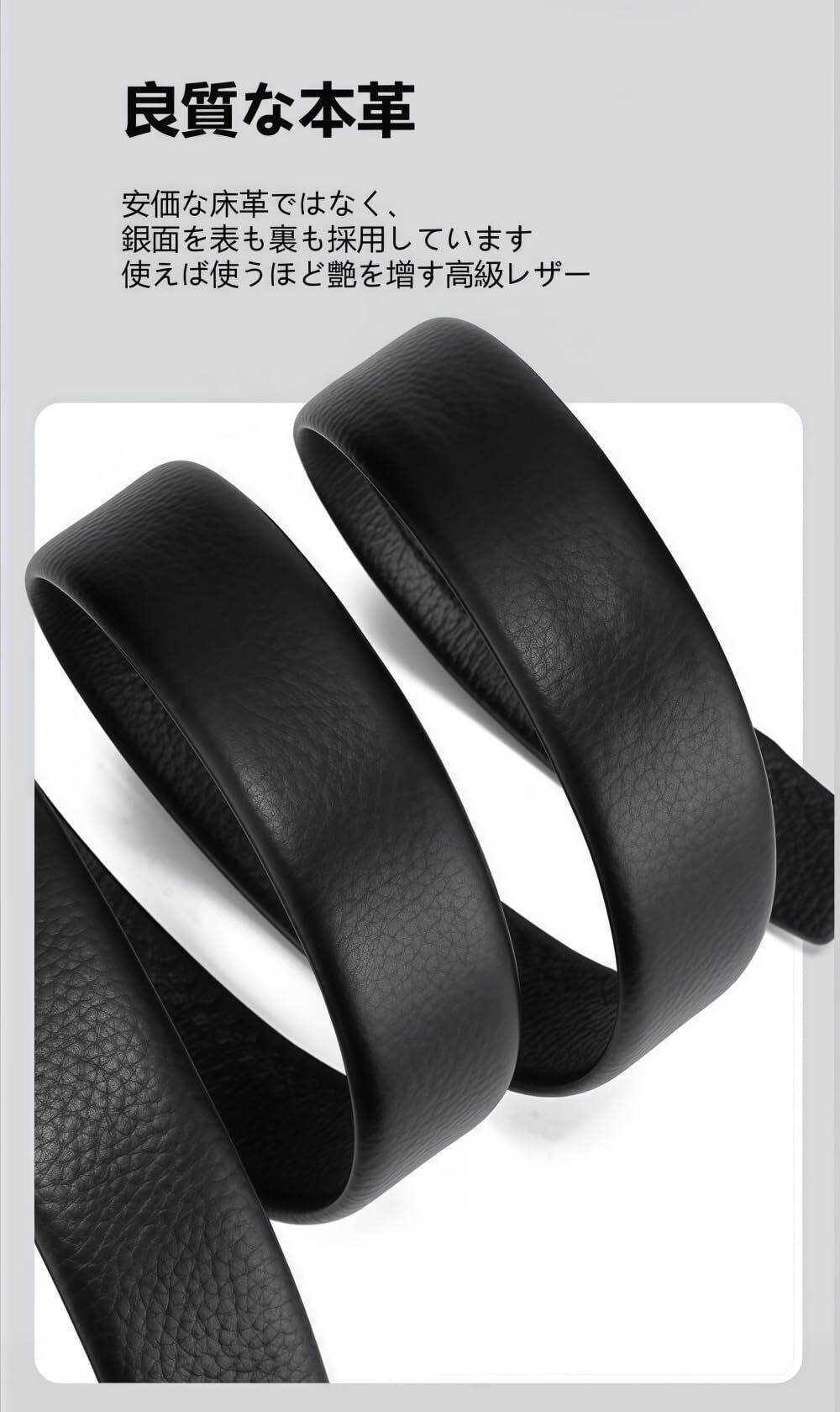 [MISSOKIE] 本革 ベルト メンズ オートロック バックル 無段階 穴なし スーツ ビジネス カジュアル コンフォート クリック ロング 120cm (一本)
