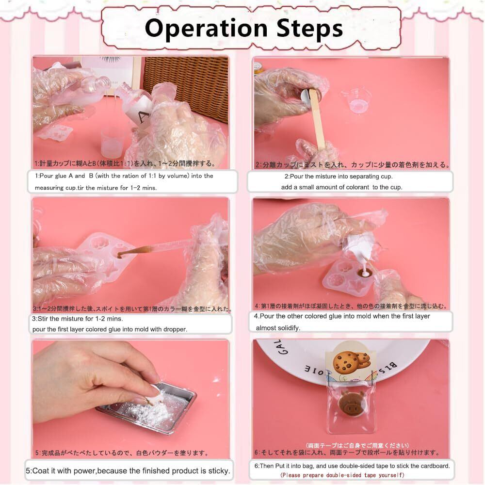 【簡単に混ぜて注ぐ】計量カップに等量のシリカゲル液体AとBを1:1の重量比で混合する。完全に混ざるまで3〜5分間撹拌する。硬化の過程で、気泡は自動的に消えます。おまけのフロッキングパウダーを加えると、ふわふわな手触りになって可愛いでたまらないです!モチモチ気持ち良すぎてずっと触りたいです包装用自粘着バッグに入れてキャンディバッグも作れます!