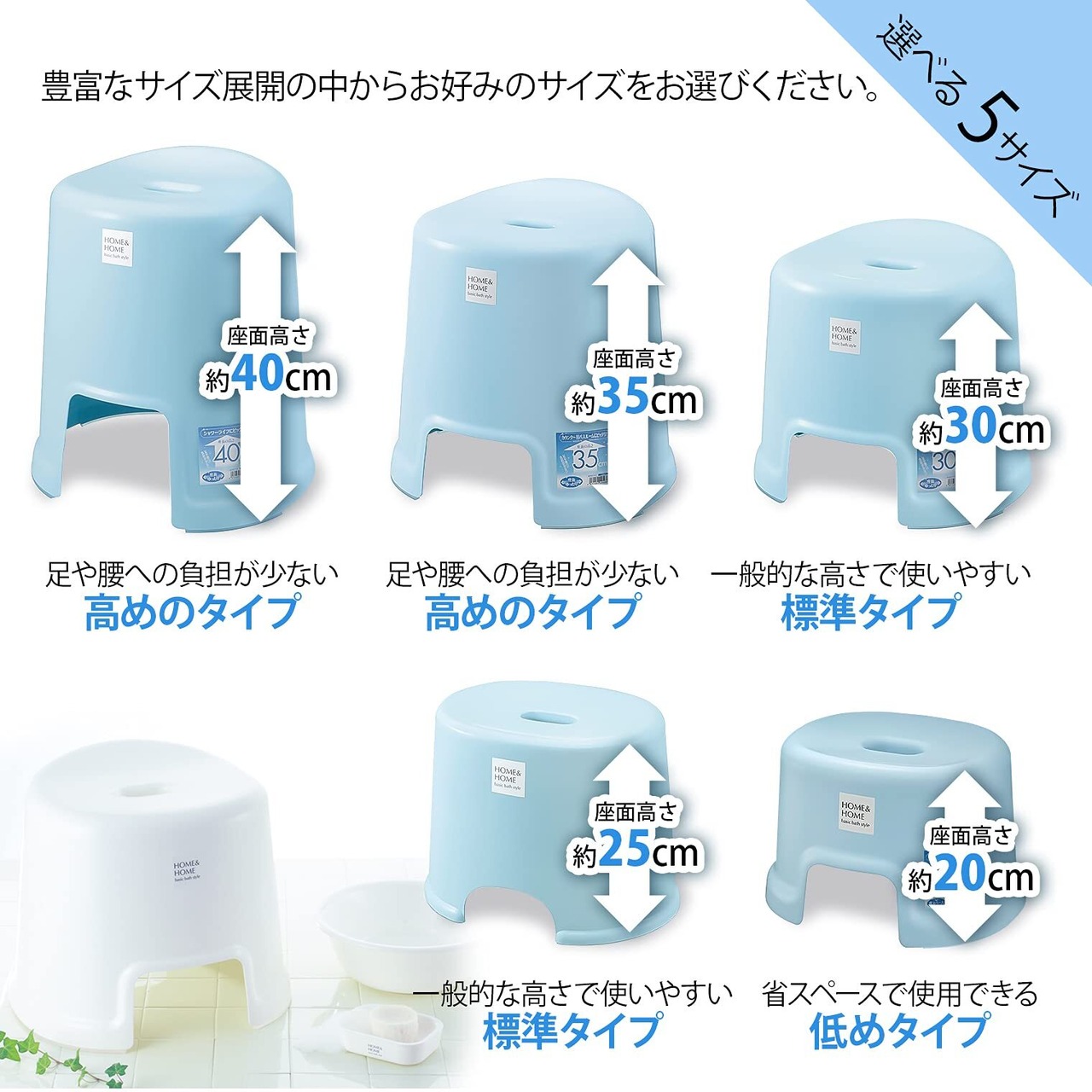 リス 風呂椅子 H&H ホワイト 高さ35cm 『防カビ加工』 日本製