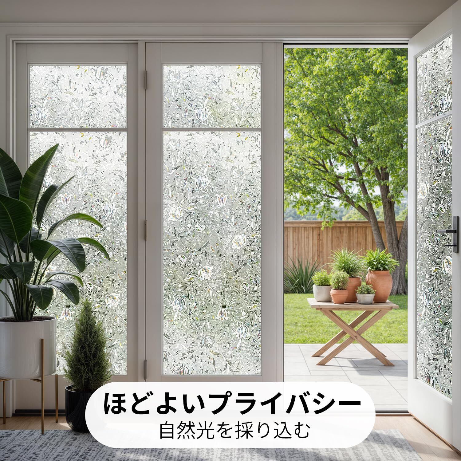 【貼り付け簡単・繰り返し使える】水だけで簡単に貼れ、剥がしても再利用可能な長寿命設計です。初心者の方でも美しく施工できるガラス用フィルムです。※必ず目隠しシートの保護フィルムを剥がしてから貼り付けてください。この工程を省略すると、窓用の目隠しシートが剥がれる原因となりますのでご注意ください。※滑らかな平面専用です。凹凸面や粗い表面にはご使用できません。
