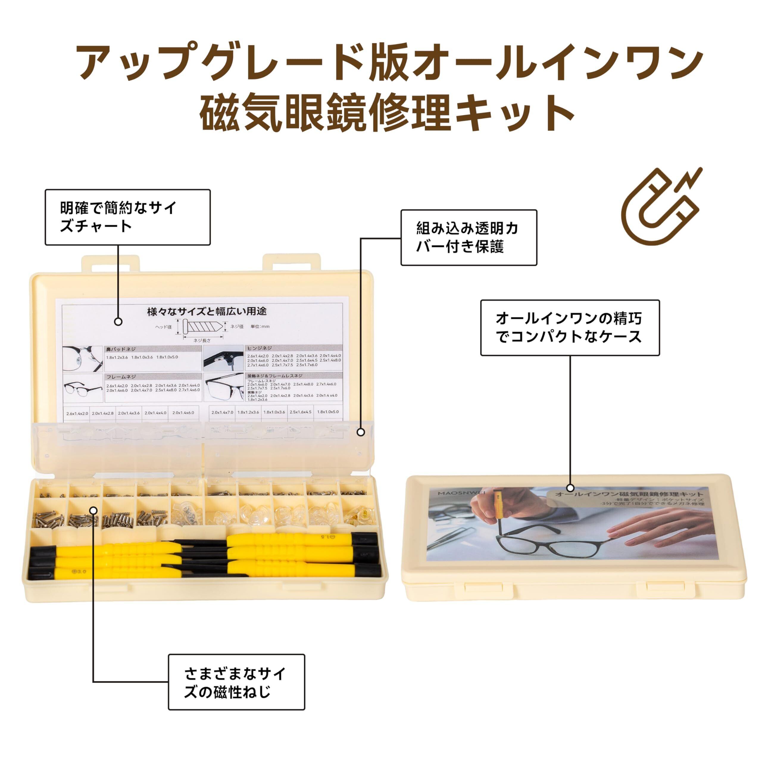 磁気付き眼镜修理キット 6本ドライバー 多機能コンパクトケース 鼻パッド調整工具 ネジ&ピンセット&クロス付き 精密メガネ修理セット