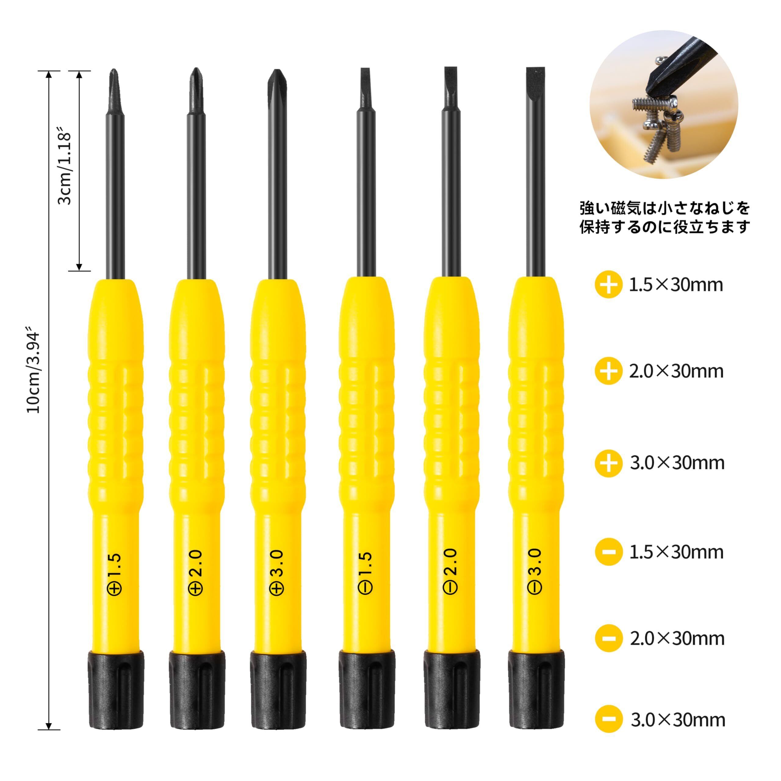 【磁気採用で落ちない精密作業】プラス(PH000/00/0)・マイナス(1.5/2.0/3.0mm)磁気ドライバー計6本が超極小ネジを確実に吸着。落下防止&ストレスフリー調整を実現。3WAYマイクロドライバーはキーホルダー付け可能で外出先でも即対応。