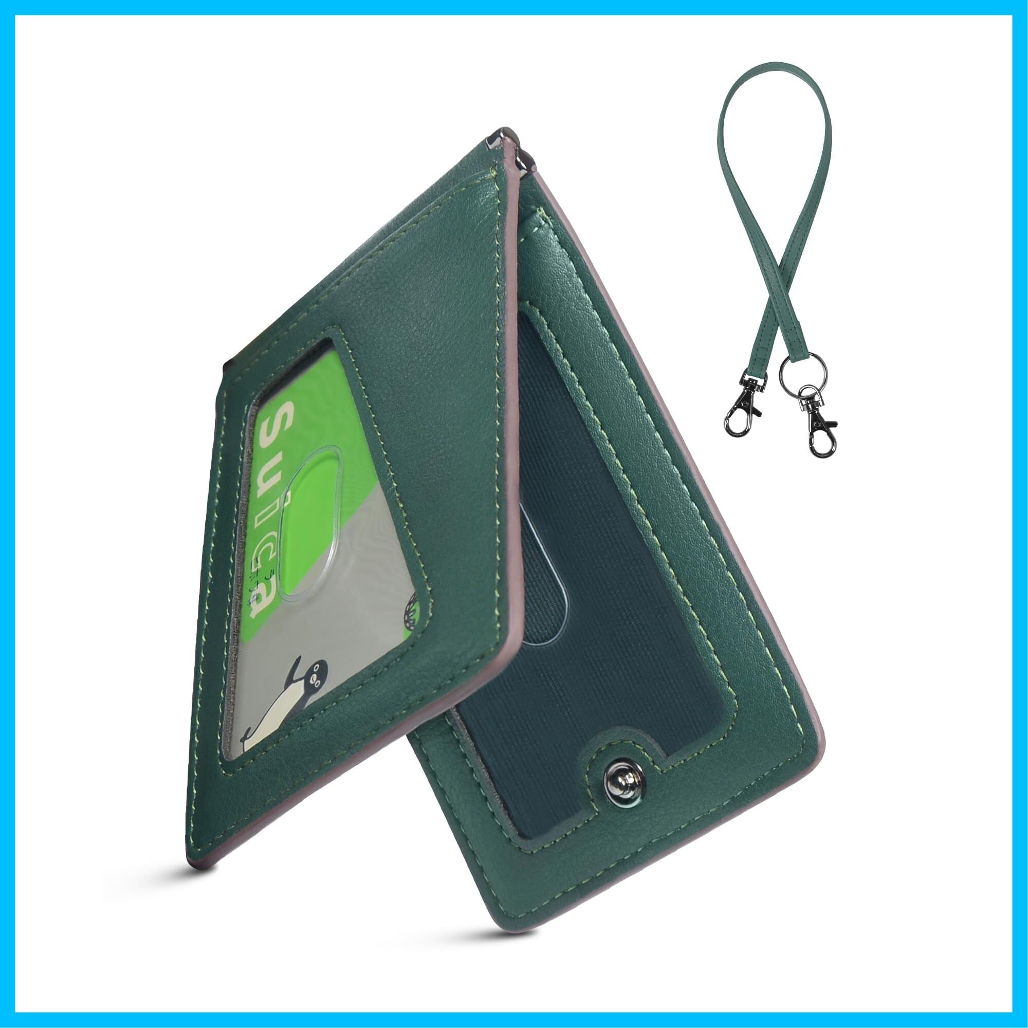 [LuoLuo] 定期入れ メンズ パスケース 5枚収納 本革Dカン 薄型 バタフライ ICカード2枚使用可能 ストラップ付き 通勤 通学 (グリーン)