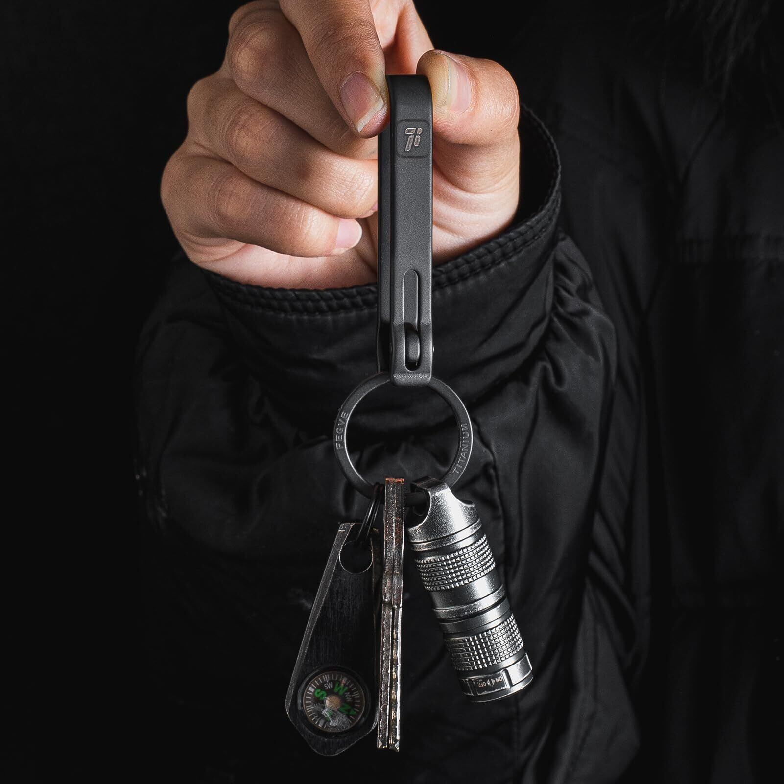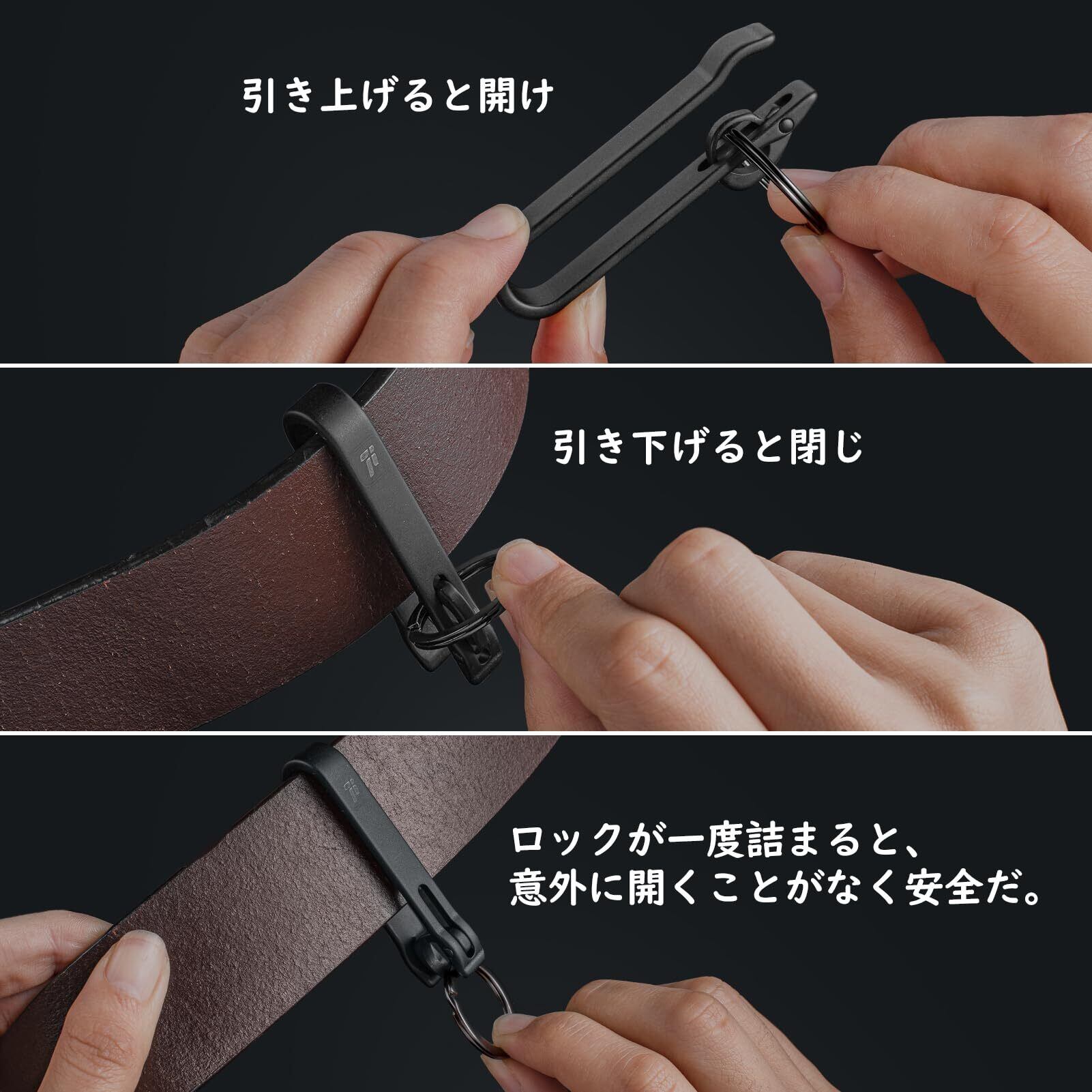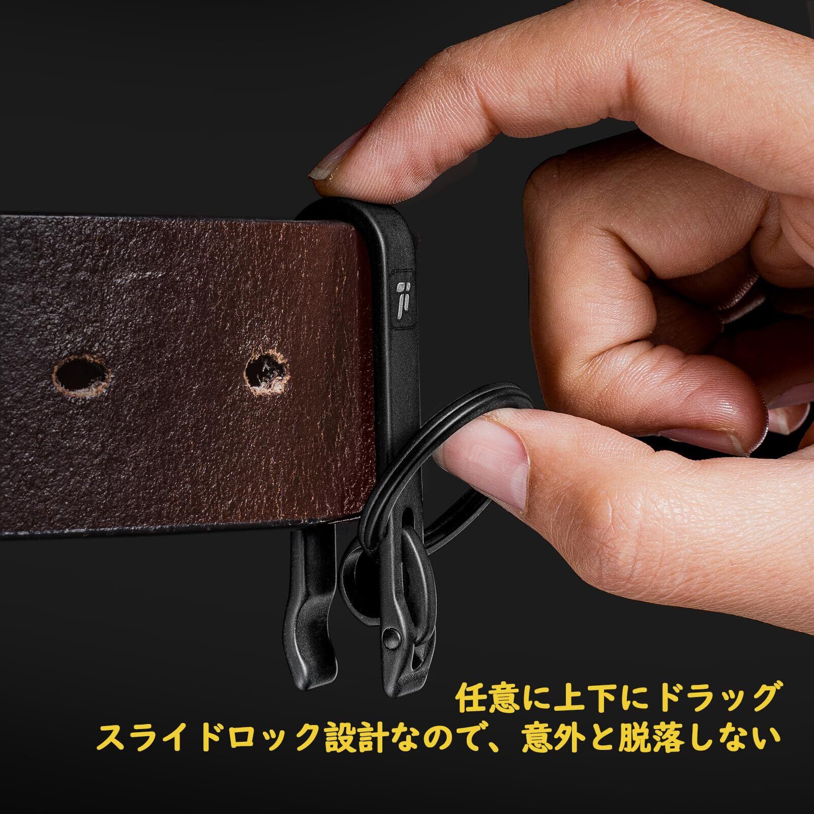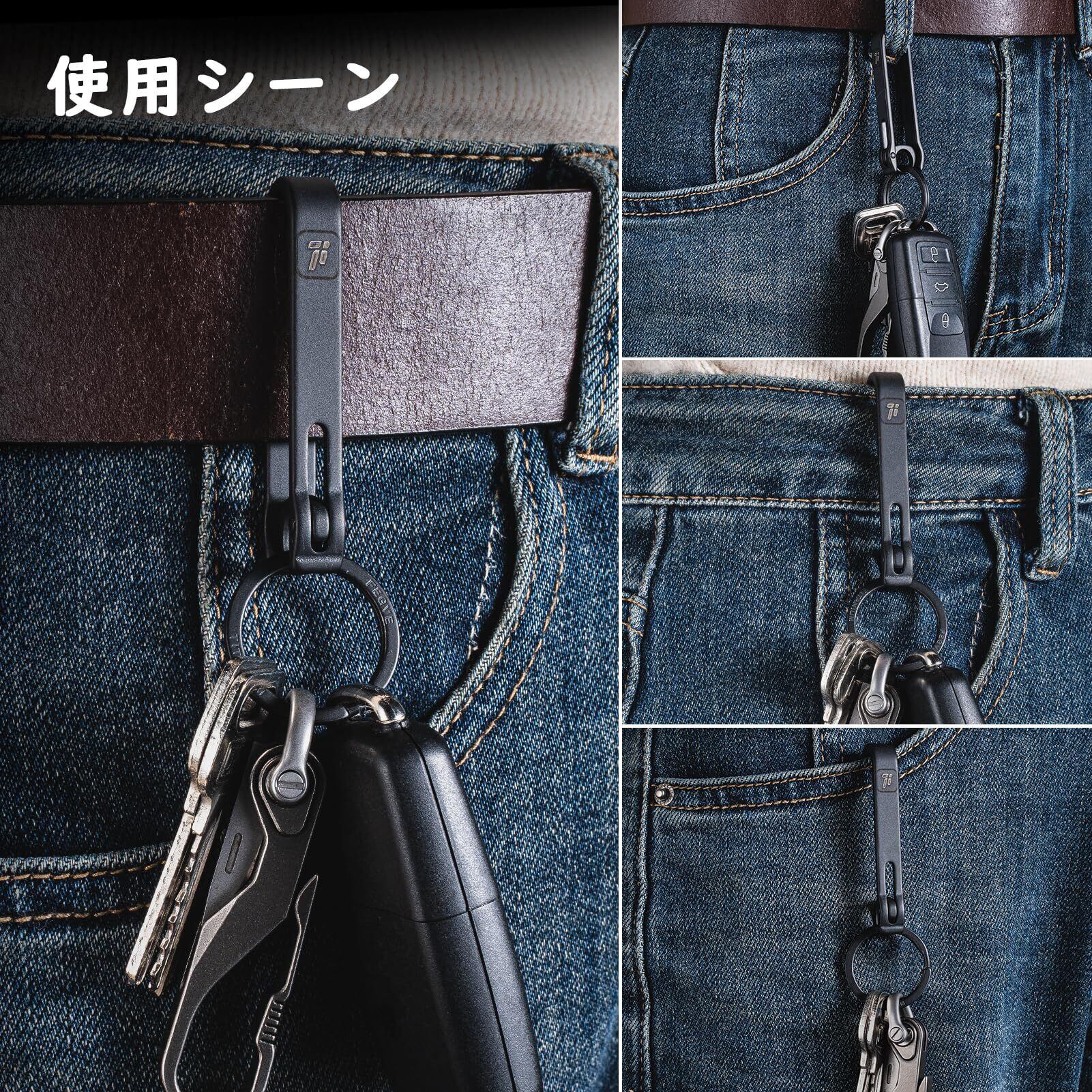 [FEGVE] チタン ベルトクリップ キーホルダー カラビナ フック 取り外し簡単 メンズ おしゃれ ズボン ベルトループ対応 車 自転車 バイク 家 鍵 (ブラック)