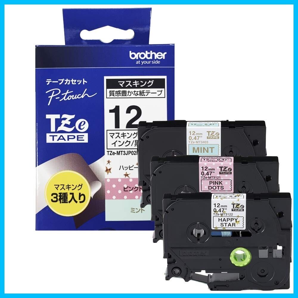 【ブラザー純正】ピータッチ マスキングテープ TZe-MT3JP02M3 幅12mm (ハッピースター,ピンクドット,ミント/3本セット)