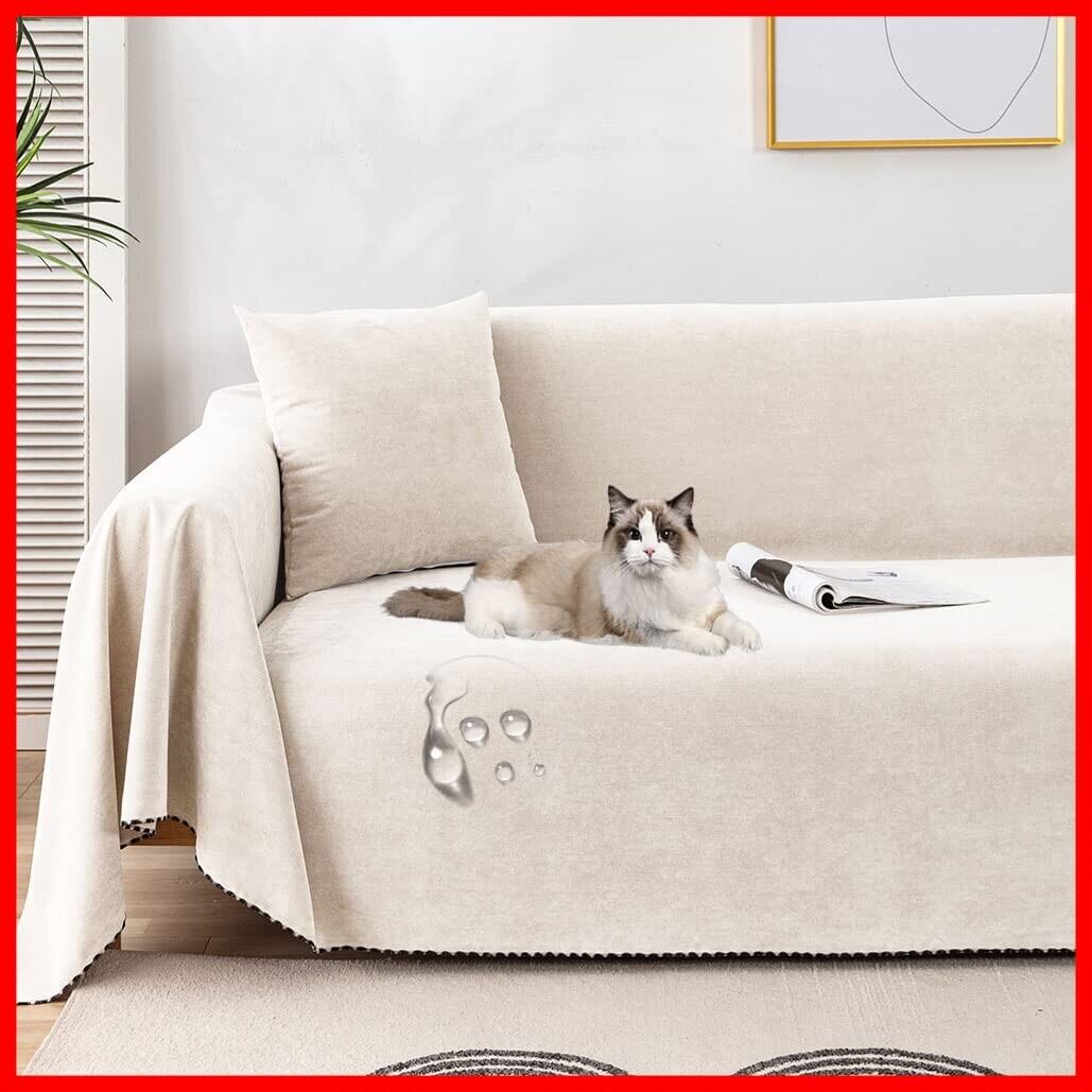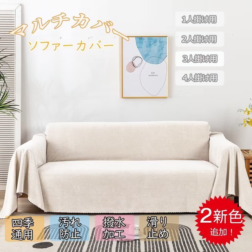 YKFN マルチカバー 長方形 大判 ソファーカバー かけるだけ 防水 ソファーベッドカバー 犬猫対策 ペット対応 マルチカバー ソファー ソファカバー 1人掛け 肘付き 肘なし 滑り止め 北欧 無地ソファーシーツ 犬猫用シート 撥水加工 傷防止 爪とぎ防止 ソファー保護カバー 防塵 汚れ防止 洗える 収納便利 四季通用 ベージュ 90*180CM