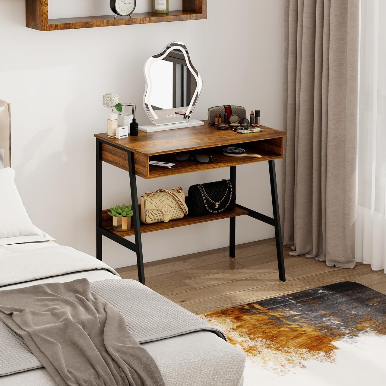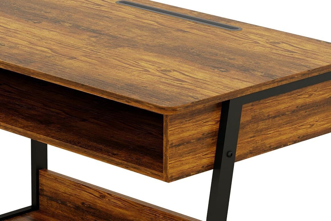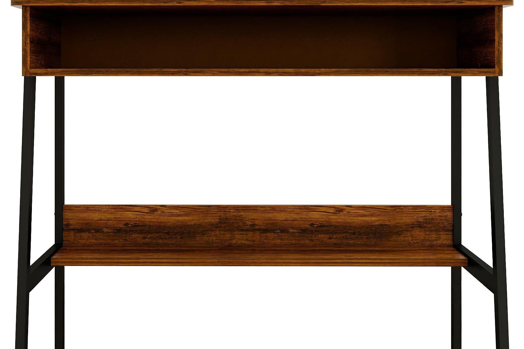 【素朴なブラウンのコンピューターデスク】このホワイト学習デスクは、小さな収納スペースのライティングテーブルとして設計されており、シンプルなデスクよりも多くの可能性を提供します。 頑丈な金属フレームにより、優れた安定性を確保。