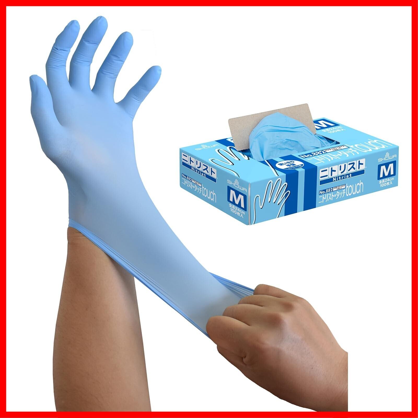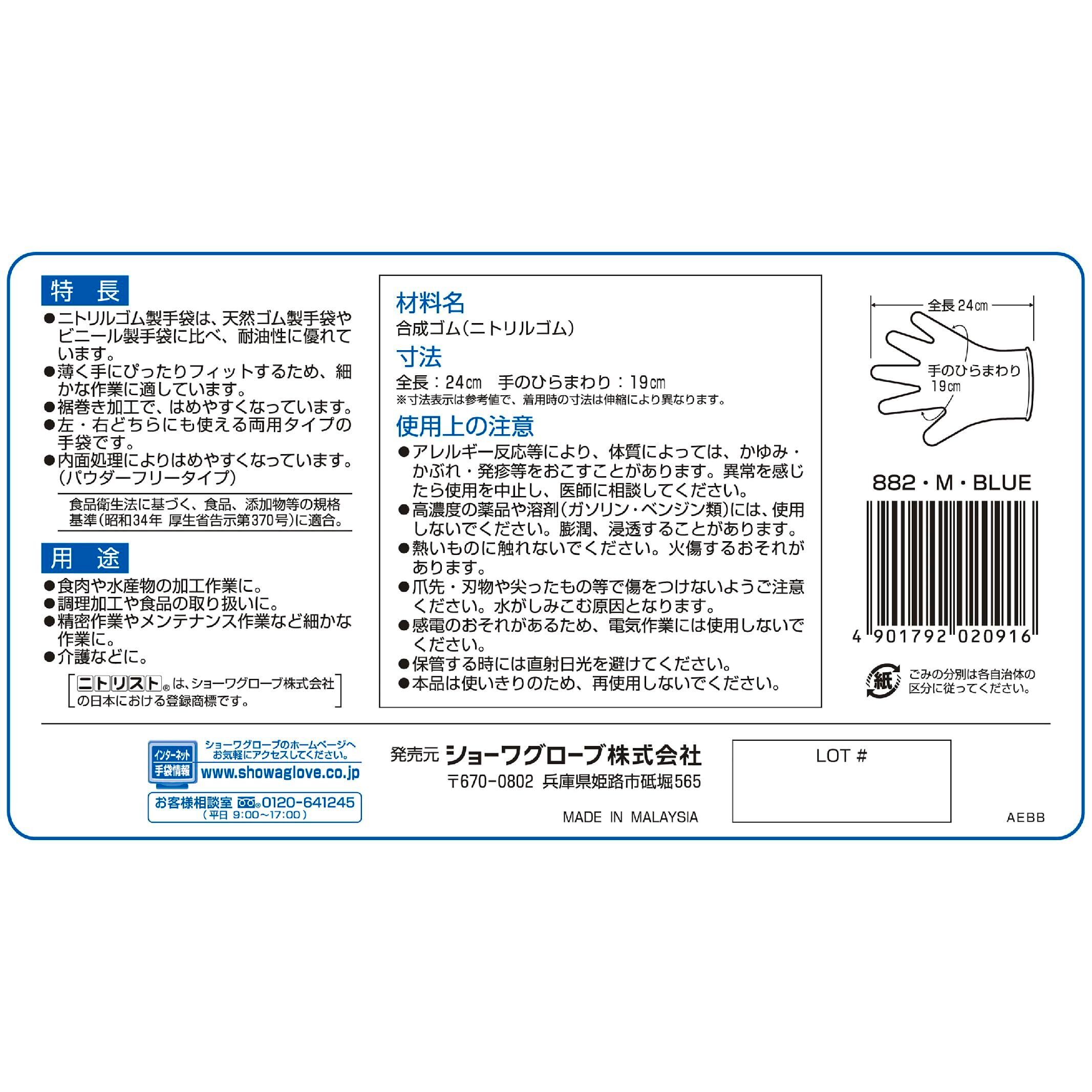 ショーワグローブ(Showaglove) 【ニトリル手袋・使いきり手袋】No.882 ニトリスト・タッチ 100枚入 ブルー Mサイズ 1函 左右兼用 食品衛生法適合 パウダーフリー ラテックスフリー