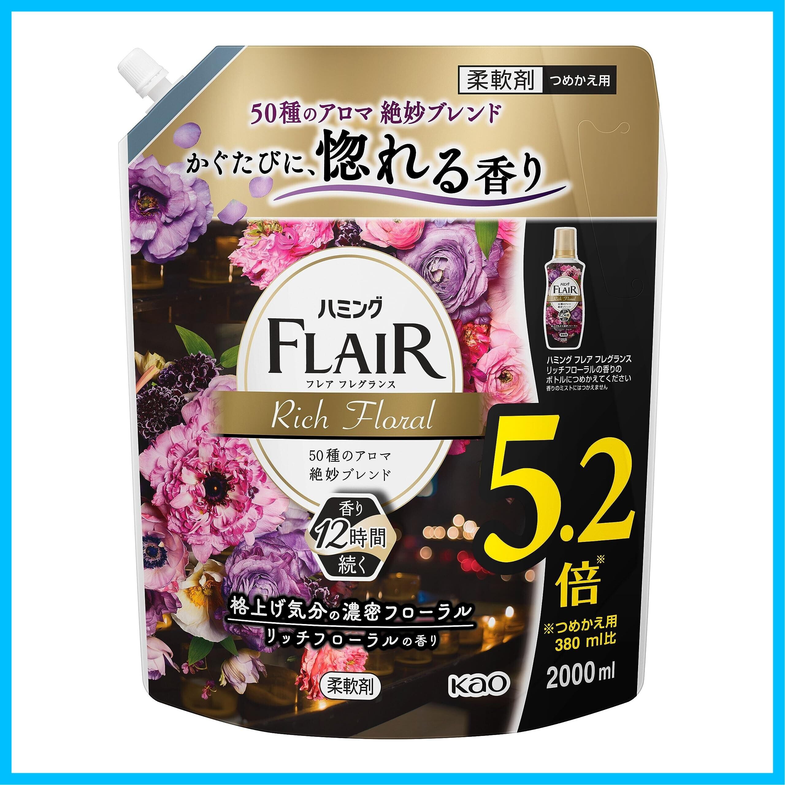 【大容量】ハミングフレア 柔軟剤50種のアロマ絶妙ブレンド。かぐたびに、惚れる香りリッチフローラルの香り詰替え用2,000ml
