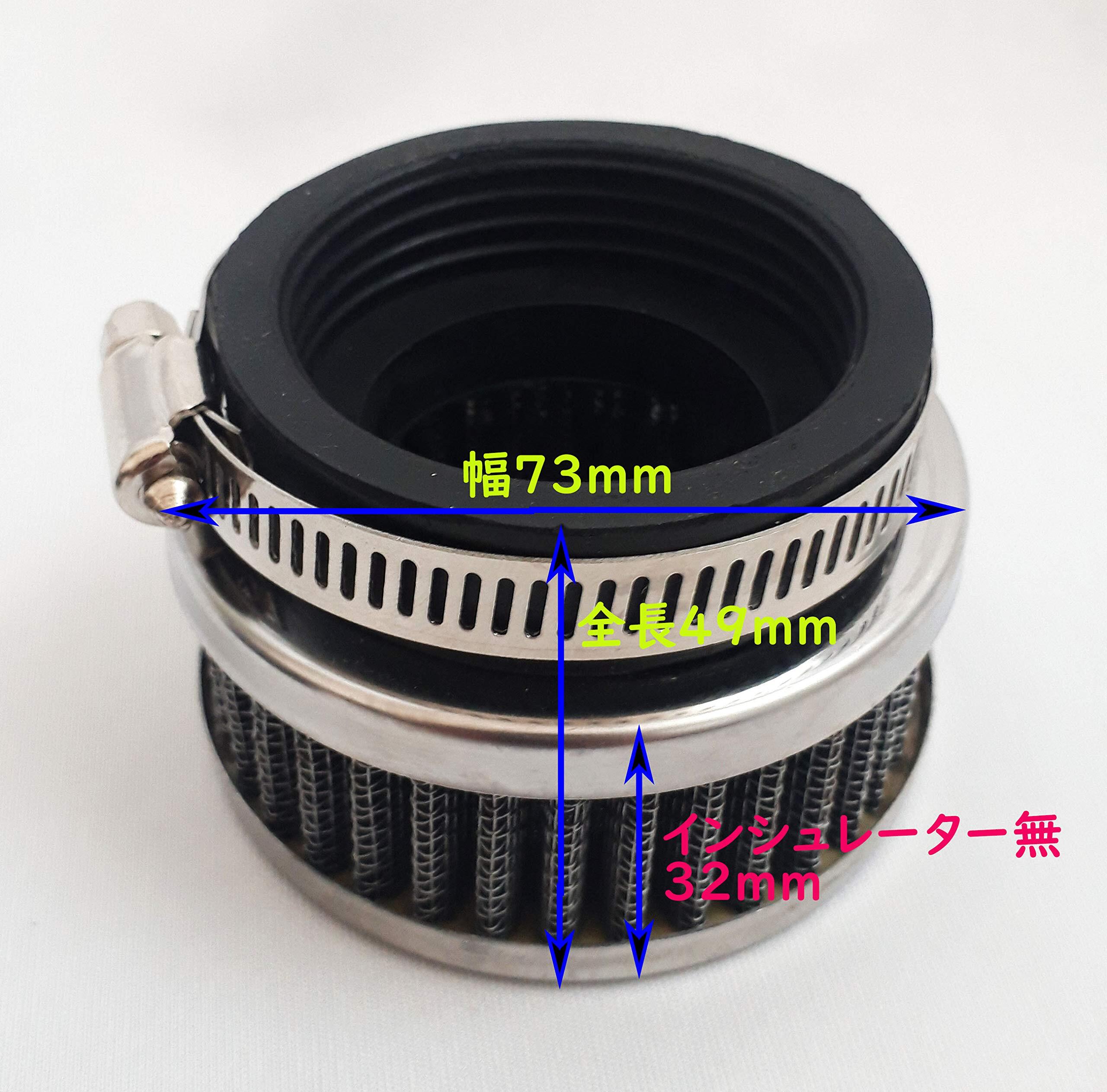 ■サイズ(円筒タイプ) ・全長49mm(インシュレーター無しで32mm) ・口径50mm (口径48~50mmに適合) ・フィルタートップ 73mm x 73mm ・フィルターアンダー 73mm x 73mm
