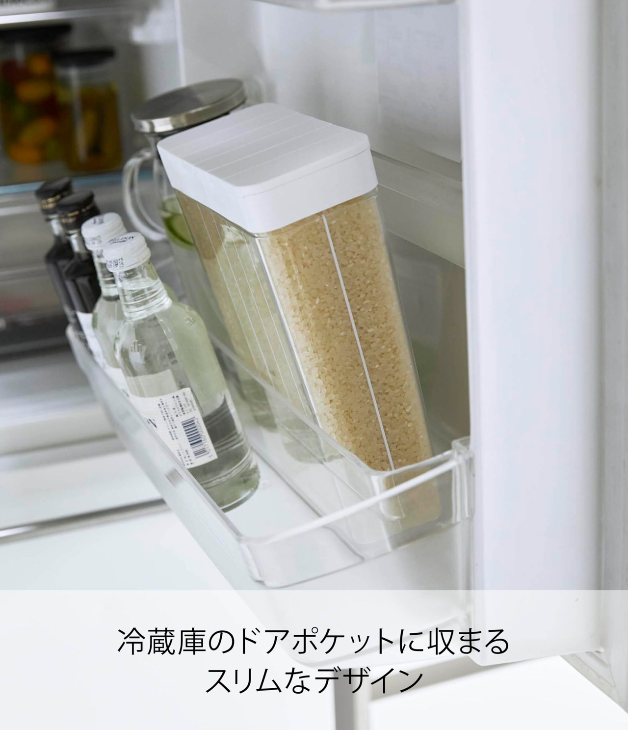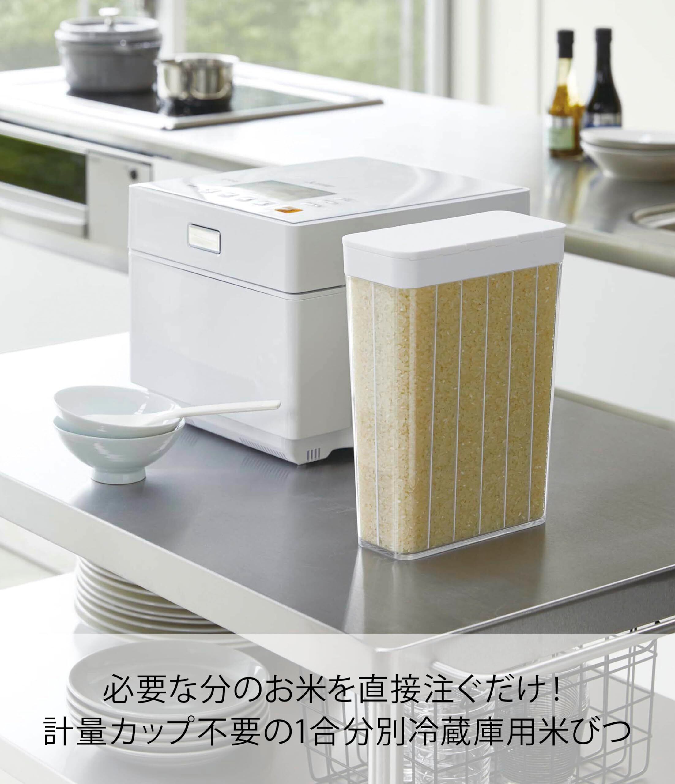 山崎実業(Yamazaki) 1合分別 冷蔵庫用米びつ ホワイト 約W18.5XD8.5XH24.5cm プレート Plate 計量いらず ライスストッカー スライド式 3822