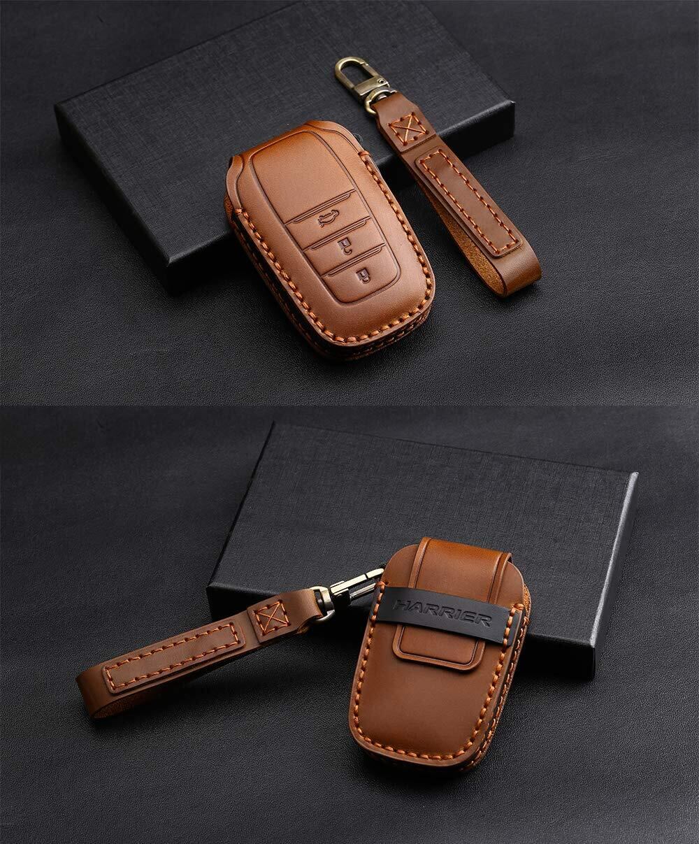 トヨタ 新型ハリアー 80系 (2020年06月~) 専用 本革 スマートキー ケース スマートキーホルダー HARRIERロゴ付 牛革 レザー 防キズ 防汚れ(ブラウン)
