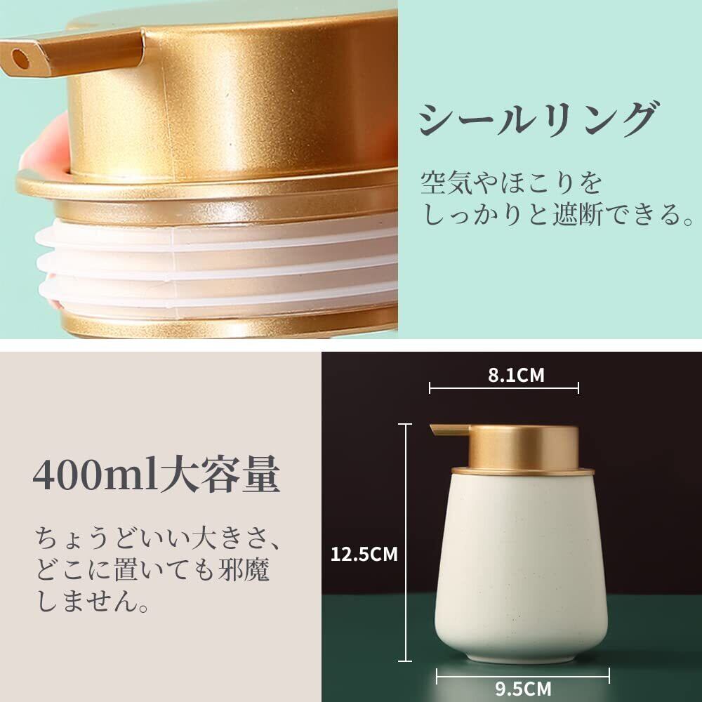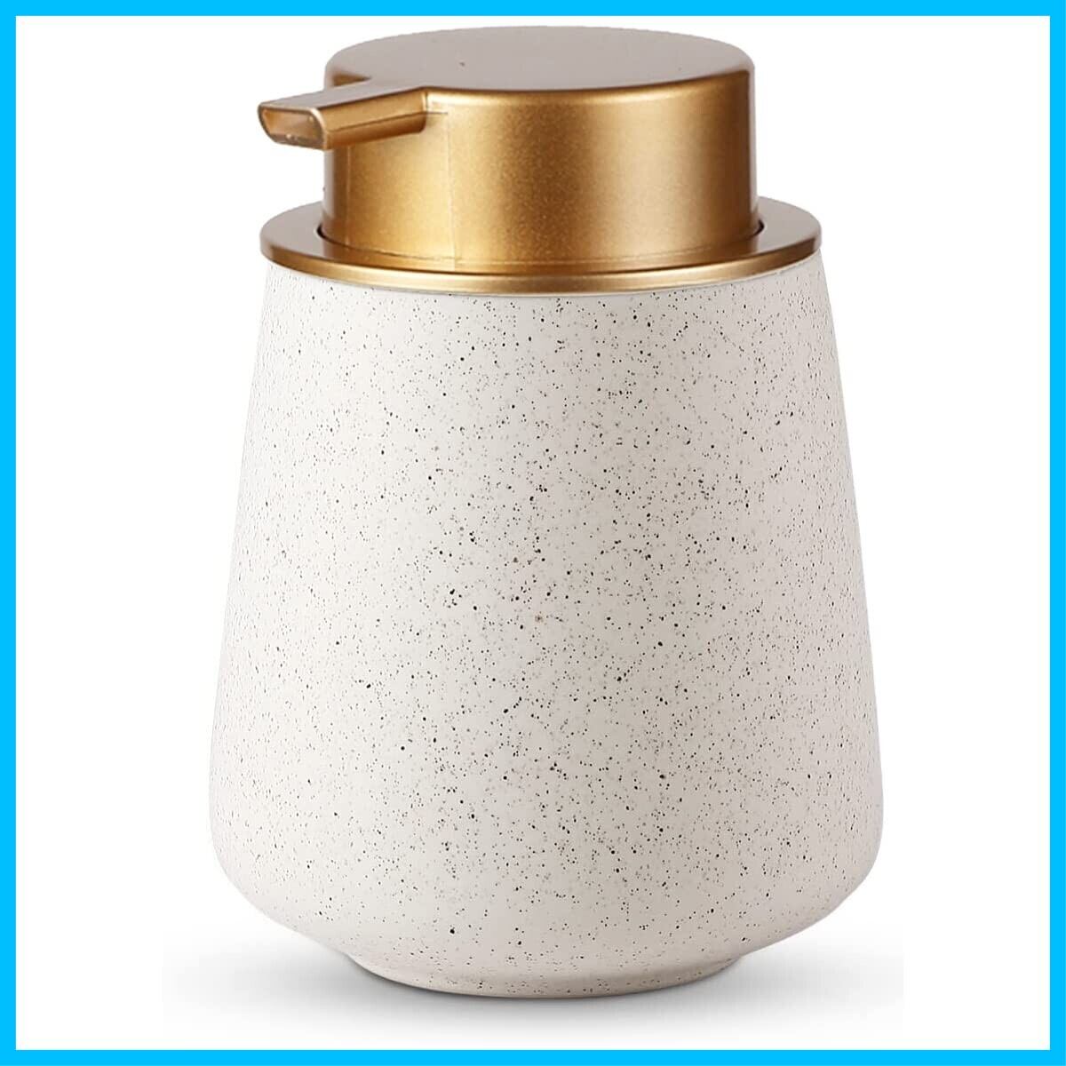 KAWEINA ハンドソープボトル ソープディスペンサー 泡 手動 押しタイプ ポンプ式 手洗い セラミック 磁器 陶器 広口 詰め替え ハンドソープ用 食器用洗剤 北欧スタイル 台所 キッチン 洗面所 トイレ バスルーム お風呂場 ドロップ型 金色+ベージュ色 AN01-golden3