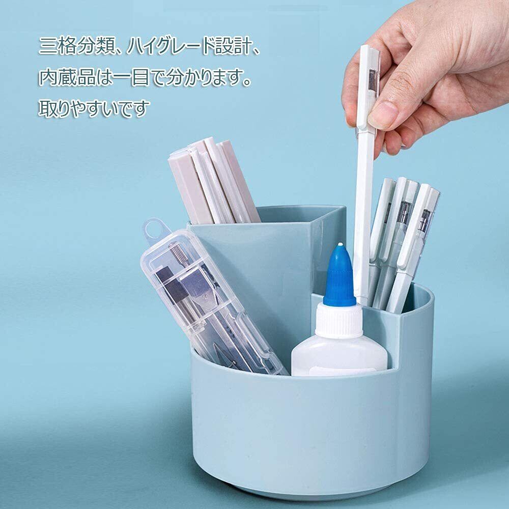 ペン立て ペンホルダー 360°回転可能 大容量 多機能 おしゃれ 回転ペンホルダー 名刺 卓上化粧品 文房具 眼鏡どの日常文房具や小物収納 ペンスタンド 事務用品 オフィス 学校 家庭生活用 収納ケース 整理整頓 プレゼント (ブルー)