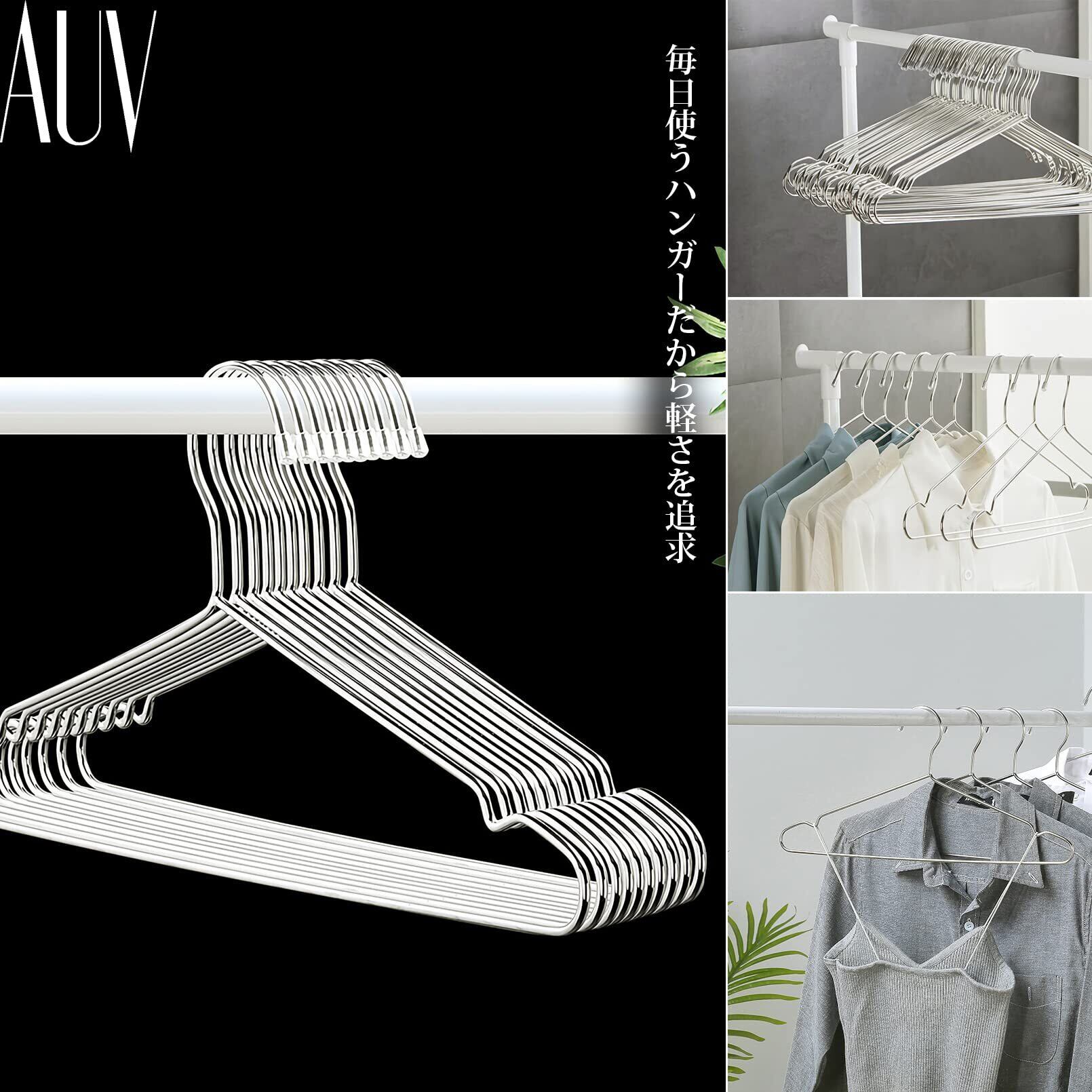 AUV ハンガー ステンレスハンガー 20本組 すべらない 頑丈 錆びにくい 曲がらない スカート シルバー ズボン コート 3.2mm 幅42cm