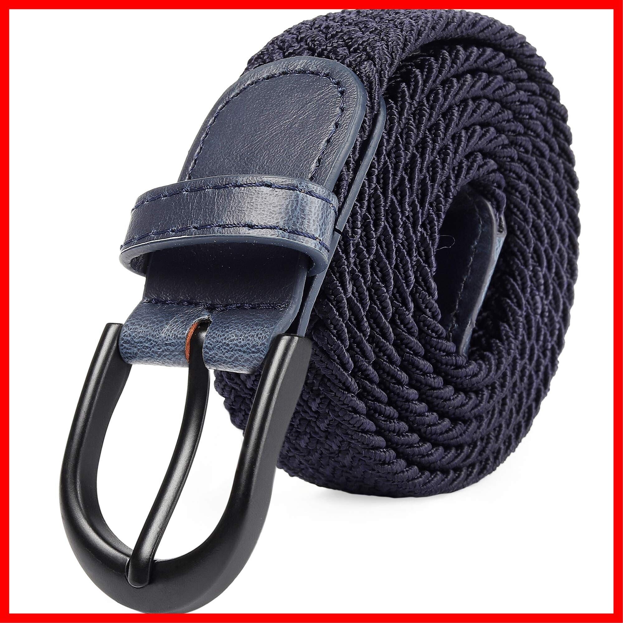 ベルト メッシュベルト フリーサイズ 編みベルト メンズ レディーズ 黒いパックル 伸縮性いい 男女兼用 カジュアル ビジネス 9色(ネイビー,ウェストサイズ:105cm-110cm)