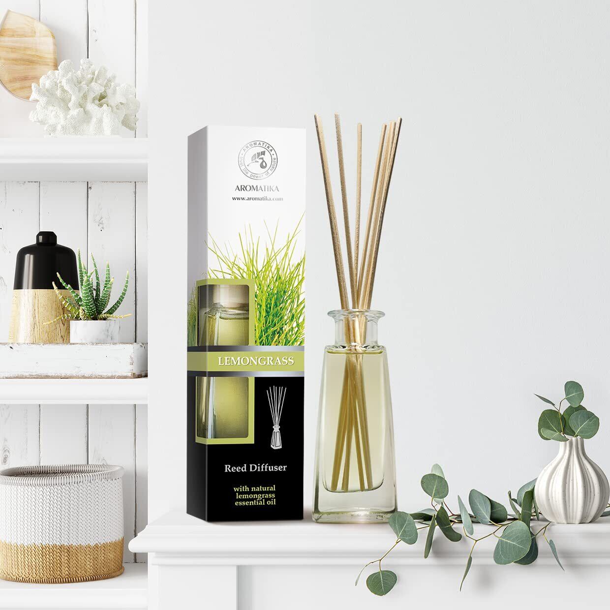 リードディフューザー レモングラスは、レモングラスのシトラス系の香りを至るところまで広げます。その香りはお祝いの気分にさせて、元気をつけてくれます。