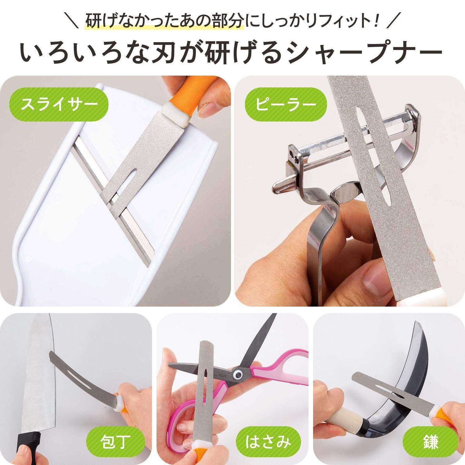コモライフ しなるダイヤモンドシャープナー 研ぎ器 しなる 研磨 ダイヤモンド粒子コーティング 研ぎムラなし 薄型 軽量 コンパクト 曲面 すき間 フィット 切れ味 粉が落ちやすい ホール設計 スライサー ピーラー 包丁 はさみ 鎌 刃物