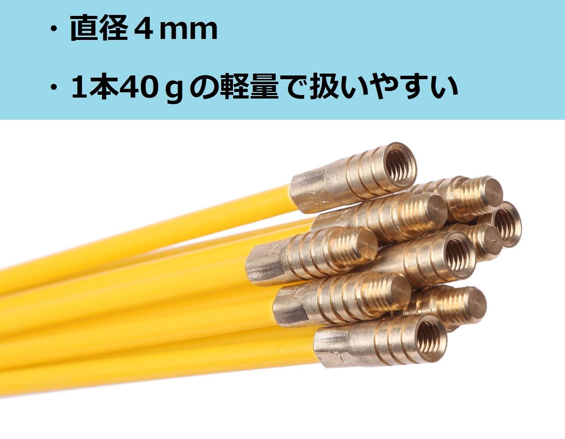 [ムーク] ケーブル索引具 1m×10本 配線 通線ワイヤー 10m 配線通し 通線ロッド 配線ガイド 先端アタッチメント付属 通線工具 MK-005 (1個10本セット)