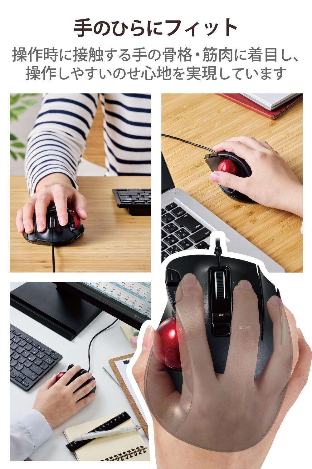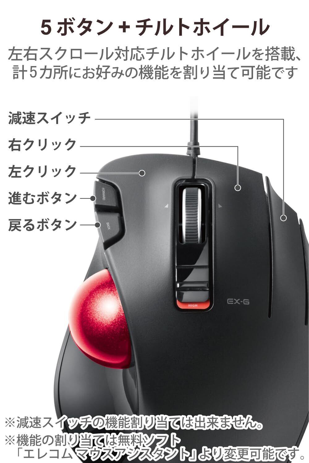 エレコム USB トラックボールマウス 5ボタン + 減速スイッチ + チルト機能 有線 赤色ボール標準搭載モデル 親指操作タイプ ブラック M-XT2URBK-G