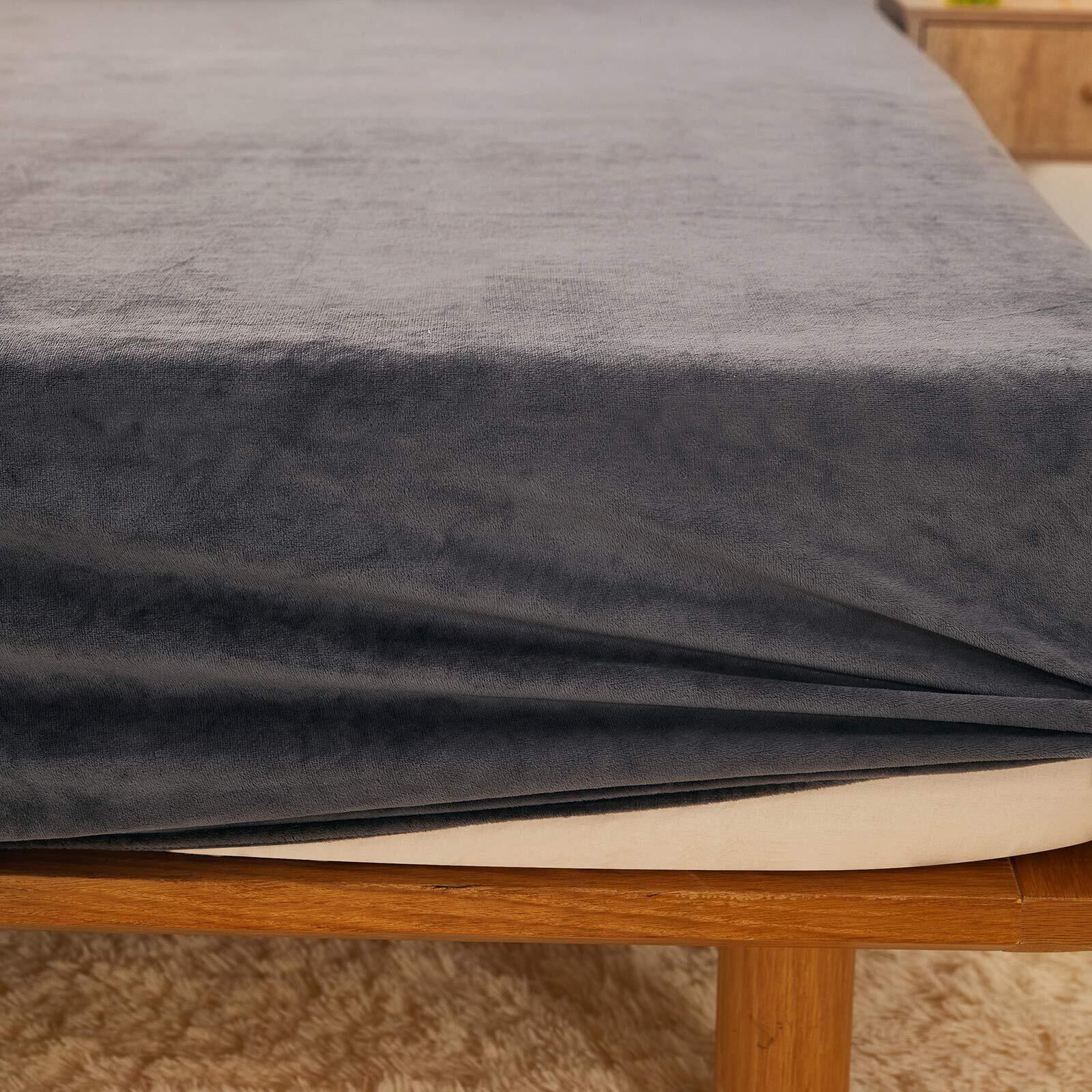 ボックスシーツ ベッドカバー セミファミリー 周囲ゴムフィット式 マイクロファイバー 冬あったかい 無地 グレー220×200×30cm