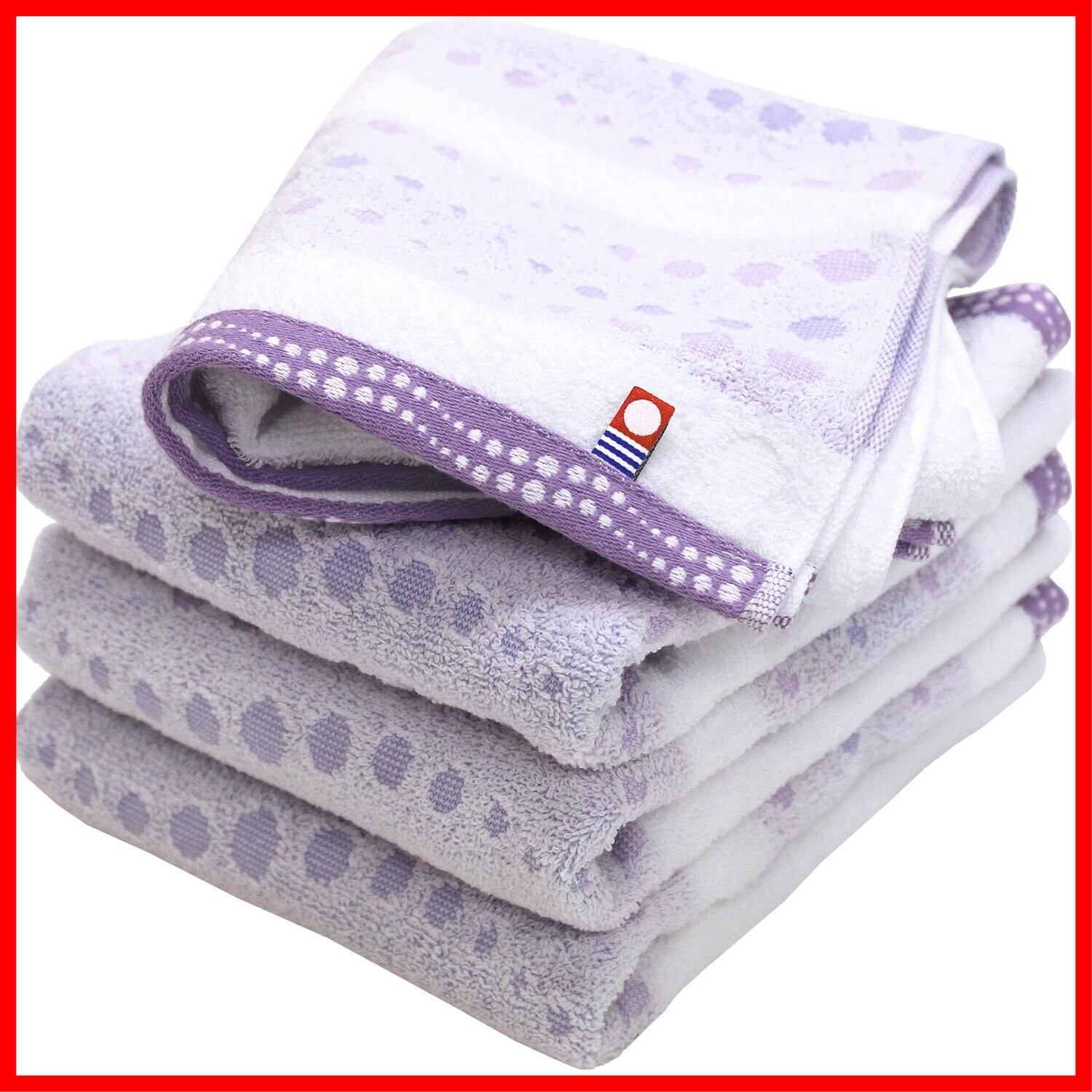 今治タオル 認定 フェイスタオル hiorie(ヒオリエ) 幾何ジャガード クレール 4枚セット パープル 日本製 今治ブランド 速乾 綿 コットン100% 水玉柄