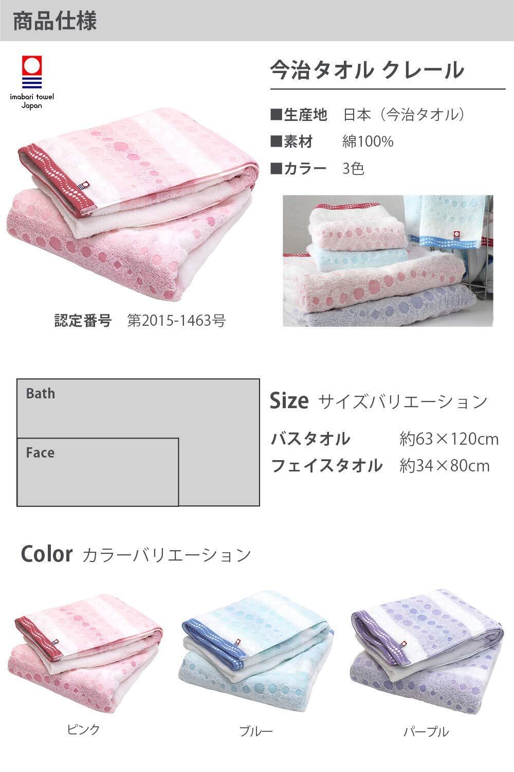 【フェイスタオル 4枚セット】生産地:日本(今治タオル 認定番号:第2015-1463号) 素材:綿100% サイズ・重さ:約34×80cm 約86g カラー:ブルー、ピンク、パープル セット内容:フェイスタオル 同色4枚