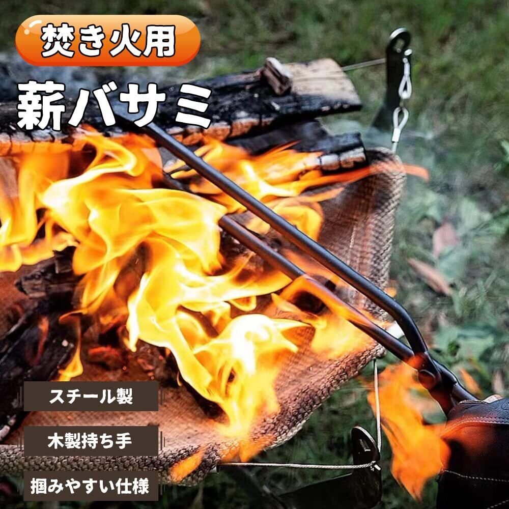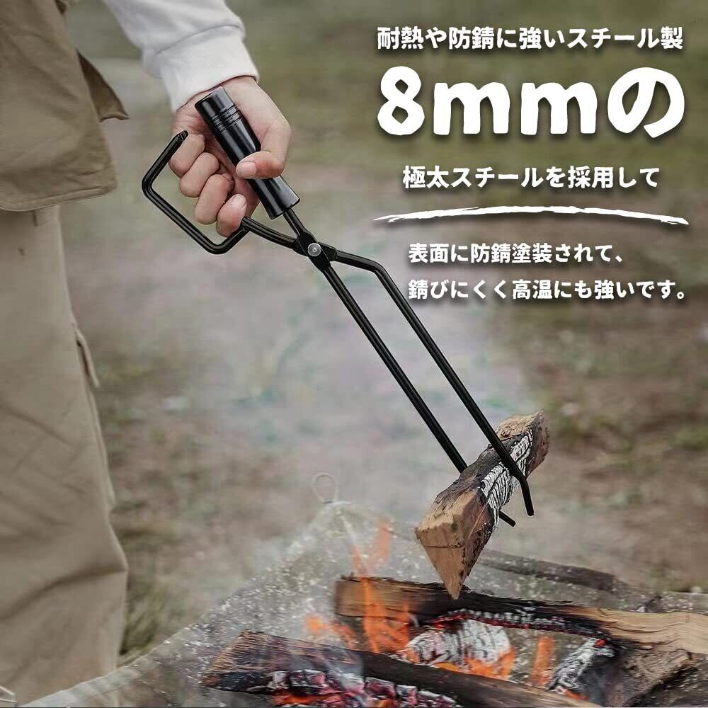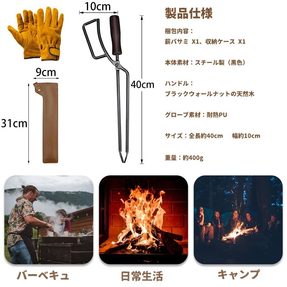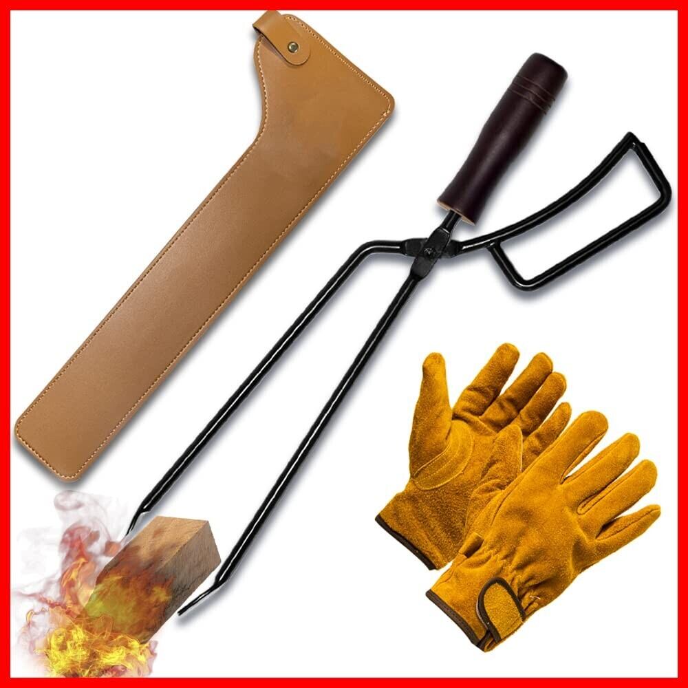 CARBABY 薪ばさみ 火バサミ ファイヤープレーストング 炭ばさみ 炭トング 収納カバー付き 耐熱グローブ付き 焚き火 薪ストーブ キャンプ用品 (スチール製)