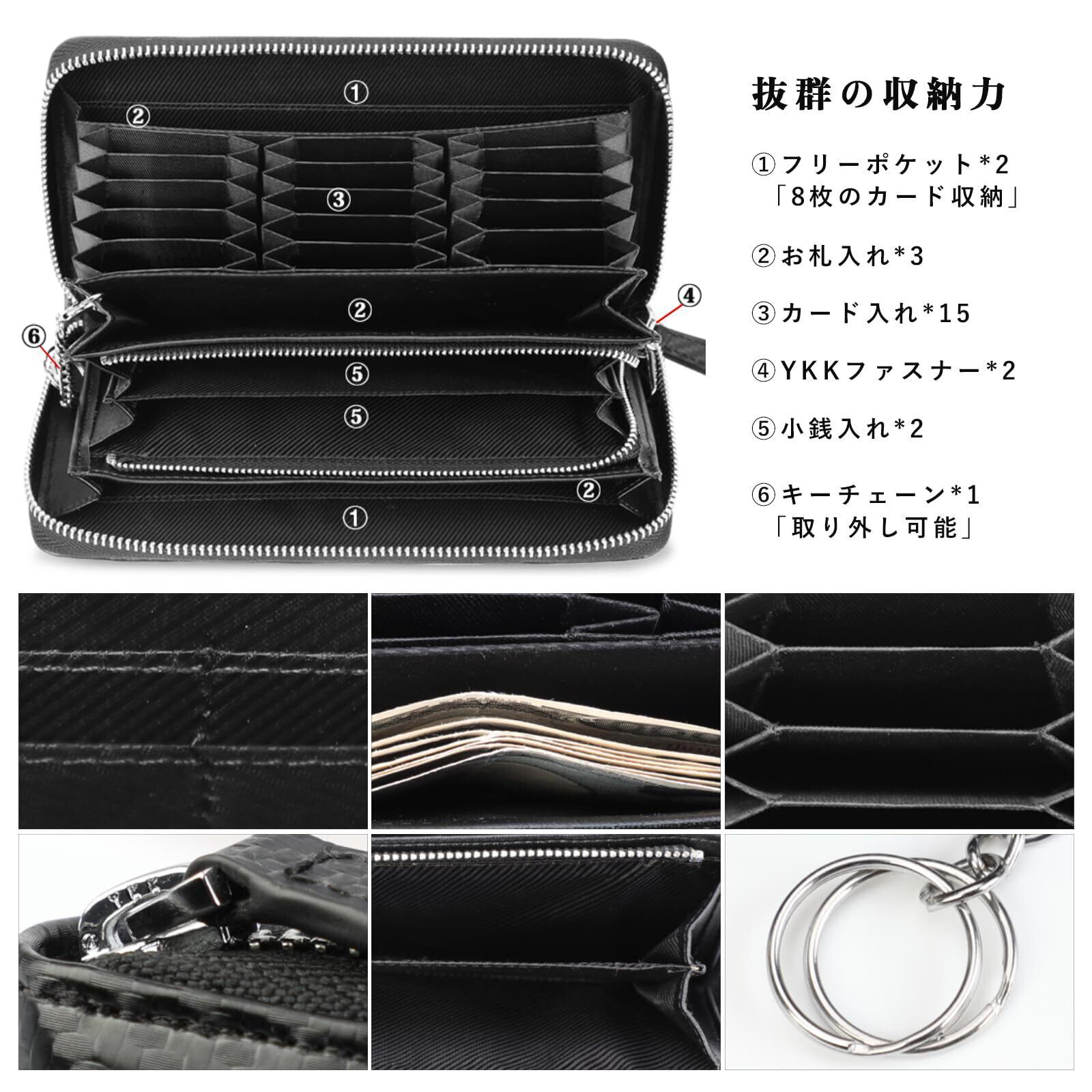 財布 メンズ 長財布 カーボンレザー 23枚カード収納 YKK ラウンドファスナー 大容量 防水 小銭入れ お札入れ 紳士 ビジネス ブラック